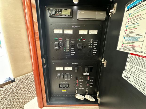 This vessel features Twin Cummins 6CTA 8.3 450-hp Diesel Engine's with approx. 1180 hours. Notable features include but are not limited to the following: Air-Conditioning & Heat (2-Units), (2) Head's (Vacuflush) w/Vanity/Sink/Shower (Note Stall-Shower Forward), Central Vacuum System, Windlass Anchor (w/Freshwater Washdown), Onan Generator, Electronics Package includes Garmin VHF Marine Radio, Dual Garmin 5212 w/GPS/Chartplotter, and Radar, Cockpit Wet Bar w/Sink/Refrigerator, Premium Fusion Sound System w/ JL Audio Speakers and Subwoofer, Above Windshield Isin Glass with Slant back Canvas, Removable Seagrass Cockpit Carpeting, and MUCH more!