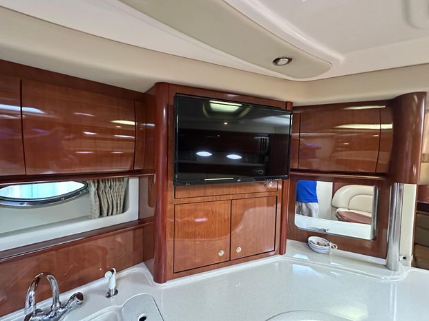 This vessel features Twin Cummins 6CTA 8.3 450-hp Diesel Engine's with approx. 1180 hours. Notable features include but are not limited to the following: Air-Conditioning & Heat (2-Units), (2) Head's (Vacuflush) w/Vanity/Sink/Shower (Note Stall-Shower Forward), Central Vacuum System, Windlass Anchor (w/Freshwater Washdown), Onan Generator, Electronics Package includes Garmin VHF Marine Radio, Dual Garmin 5212 w/GPS/Chartplotter, and Radar, Cockpit Wet Bar w/Sink/Refrigerator, Premium Fusion Sound System w/ JL Audio Speakers and Subwoofer, Above Windshield Isin Glass with Slant back Canvas, Removable Seagrass Cockpit Carpeting, and MUCH more!