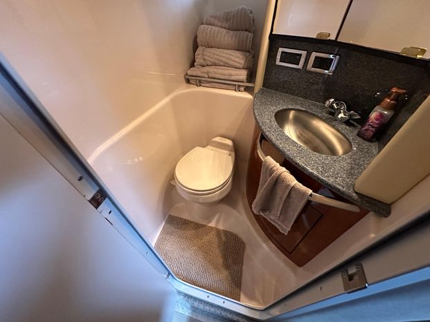 This vessel features Twin Cummins 6CTA 8.3 450-hp Diesel Engine's with approx. 1180 hours. Notable features include but are not limited to the following: Air-Conditioning & Heat (2-Units), (2) Head's (Vacuflush) w/Vanity/Sink/Shower (Note Stall-Shower Forward), Central Vacuum System, Windlass Anchor (w/Freshwater Washdown), Onan Generator, Electronics Package includes Garmin VHF Marine Radio, Dual Garmin 5212 w/GPS/Chartplotter, and Radar, Cockpit Wet Bar w/Sink/Refrigerator, Premium Fusion Sound System w/ JL Audio Speakers and Subwoofer, Above Windshield Isin Glass with Slant back Canvas, Removable Seagrass Cockpit Carpeting, and MUCH more!