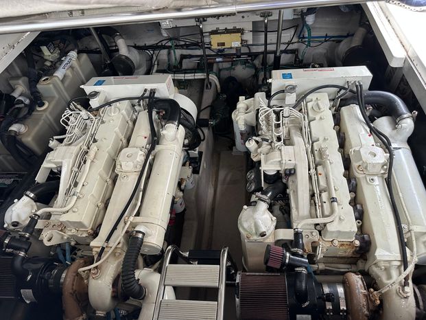 This vessel features Twin Cummins 6CTA 8.3 450-hp Diesel Engine's with approx. 1180 hours. Notable features include but are not limited to the following: Air-Conditioning & Heat (2-Units), (2) Head's (Vacuflush) w/Vanity/Sink/Shower (Note Stall-Shower Forward), Central Vacuum System, Windlass Anchor (w/Freshwater Washdown), Onan Generator, Electronics Package includes Garmin VHF Marine Radio, Dual Garmin 5212 w/GPS/Chartplotter, and Radar, Cockpit Wet Bar w/Sink/Refrigerator, Premium Fusion Sound System w/ JL Audio Speakers and Subwoofer, Above Windshield Isin Glass with Slant back Canvas, Removable Seagrass Cockpit Carpeting, and MUCH more!