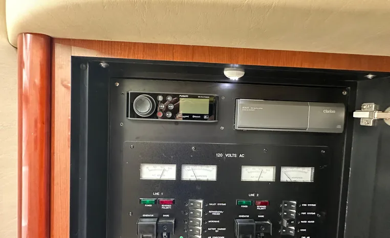 This vessel features Twin Cummins 6CTA 8.3 450-hp Diesel Engine's with approx. 1180 hours. Notable features include but are not limited to the following: Air-Conditioning & Heat (2-Units), (2) Head's (Vacuflush) w/Vanity/Sink/Shower (Note Stall-Shower Forward), Central Vacuum System, Windlass Anchor (w/Freshwater Washdown), Onan Generator, Electronics Package includes Garmin VHF Marine Radio, Dual Garmin 5212 w/GPS/Chartplotter, and Radar, Cockpit Wet Bar w/Sink/Refrigerator, Premium Fusion Sound System w/ JL Audio Speakers and Subwoofer, Above Windshield Isin Glass with Slant back Canvas, Removable Seagrass Cockpit Carpeting, and MUCH more!