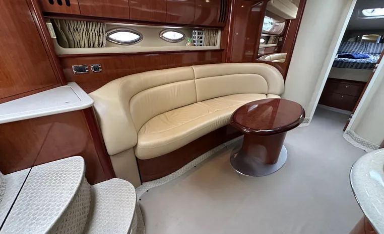 This vessel features Twin Cummins 6CTA 8.3 450-hp Diesel Engine's with approx. 1180 hours. Notable features include but are not limited to the following: Air-Conditioning & Heat (2-Units), (2) Head's (Vacuflush) w/Vanity/Sink/Shower (Note Stall-Shower Forward), Central Vacuum System, Windlass Anchor (w/Freshwater Washdown), Onan Generator, Electronics Package includes Garmin VHF Marine Radio, Dual Garmin 5212 w/GPS/Chartplotter, and Radar, Cockpit Wet Bar w/Sink/Refrigerator, Premium Fusion Sound System w/ JL Audio Speakers and Subwoofer, Above Windshield Isin Glass with Slant back Canvas, Removable Seagrass Cockpit Carpeting, and MUCH more!