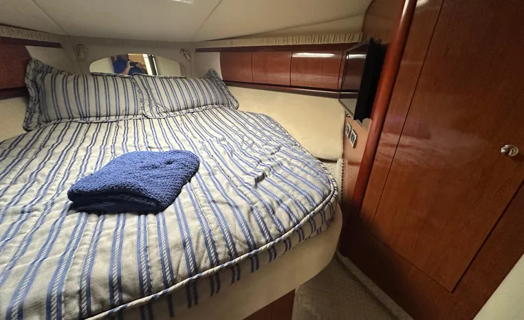 This vessel features Twin Cummins 6CTA 8.3 450-hp Diesel Engine's with approx. 1180 hours. Notable features include but are not limited to the following: Air-Conditioning & Heat (2-Units), (2) Head's (Vacuflush) w/Vanity/Sink/Shower (Note Stall-Shower Forward), Central Vacuum System, Windlass Anchor (w/Freshwater Washdown), Onan Generator, Electronics Package includes Garmin VHF Marine Radio, Dual Garmin 5212 w/GPS/Chartplotter, and Radar, Cockpit Wet Bar w/Sink/Refrigerator, Premium Fusion Sound System w/ JL Audio Speakers and Subwoofer, Above Windshield Isin Glass with Slant back Canvas, Removable Seagrass Cockpit Carpeting, and MUCH more!
