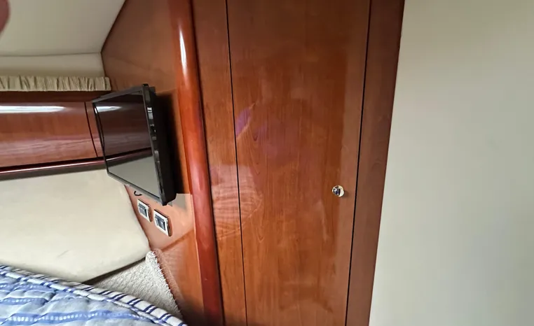 This vessel features Twin Cummins 6CTA 8.3 450-hp Diesel Engine's with approx. 1180 hours. Notable features include but are not limited to the following: Air-Conditioning & Heat (2-Units), (2) Head's (Vacuflush) w/Vanity/Sink/Shower (Note Stall-Shower Forward), Central Vacuum System, Windlass Anchor (w/Freshwater Washdown), Onan Generator, Electronics Package includes Garmin VHF Marine Radio, Dual Garmin 5212 w/GPS/Chartplotter, and Radar, Cockpit Wet Bar w/Sink/Refrigerator, Premium Fusion Sound System w/ JL Audio Speakers and Subwoofer, Above Windshield Isin Glass with Slant back Canvas, Removable Seagrass Cockpit Carpeting, and MUCH more!