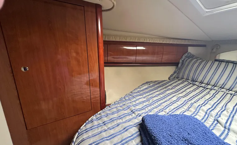 This vessel features Twin Cummins 6CTA 8.3 450-hp Diesel Engine's with approx. 1180 hours. Notable features include but are not limited to the following: Air-Conditioning & Heat (2-Units), (2) Head's (Vacuflush) w/Vanity/Sink/Shower (Note Stall-Shower Forward), Central Vacuum System, Windlass Anchor (w/Freshwater Washdown), Onan Generator, Electronics Package includes Garmin VHF Marine Radio, Dual Garmin 5212 w/GPS/Chartplotter, and Radar, Cockpit Wet Bar w/Sink/Refrigerator, Premium Fusion Sound System w/ JL Audio Speakers and Subwoofer, Above Windshield Isin Glass with Slant back Canvas, Removable Seagrass Cockpit Carpeting, and MUCH more!