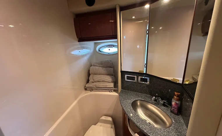 This vessel features Twin Cummins 6CTA 8.3 450-hp Diesel Engine's with approx. 1180 hours. Notable features include but are not limited to the following: Air-Conditioning & Heat (2-Units), (2) Head's (Vacuflush) w/Vanity/Sink/Shower (Note Stall-Shower Forward), Central Vacuum System, Windlass Anchor (w/Freshwater Washdown), Onan Generator, Electronics Package includes Garmin VHF Marine Radio, Dual Garmin 5212 w/GPS/Chartplotter, and Radar, Cockpit Wet Bar w/Sink/Refrigerator, Premium Fusion Sound System w/ JL Audio Speakers and Subwoofer, Above Windshield Isin Glass with Slant back Canvas, Removable Seagrass Cockpit Carpeting, and MUCH more!
