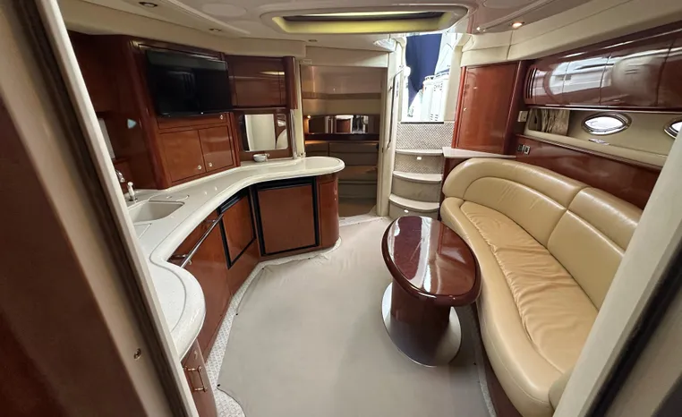 This vessel features Twin Cummins 6CTA 8.3 450-hp Diesel Engine's with approx. 1180 hours. Notable features include but are not limited to the following: Air-Conditioning & Heat (2-Units), (2) Head's (Vacuflush) w/Vanity/Sink/Shower (Note Stall-Shower Forward), Central Vacuum System, Windlass Anchor (w/Freshwater Washdown), Onan Generator, Electronics Package includes Garmin VHF Marine Radio, Dual Garmin 5212 w/GPS/Chartplotter, and Radar, Cockpit Wet Bar w/Sink/Refrigerator, Premium Fusion Sound System w/ JL Audio Speakers and Subwoofer, Above Windshield Isin Glass with Slant back Canvas, Removable Seagrass Cockpit Carpeting, and MUCH more!