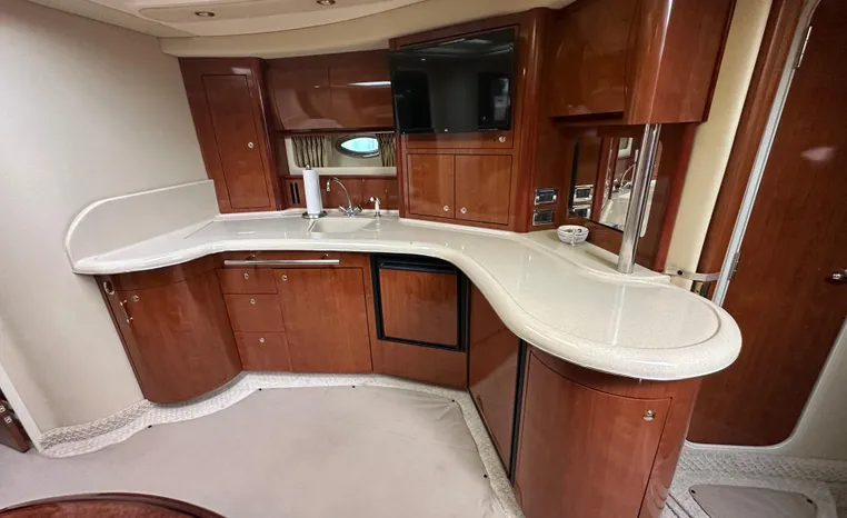 This vessel features Twin Cummins 6CTA 8.3 450-hp Diesel Engine's with approx. 1180 hours. Notable features include but are not limited to the following: Air-Conditioning & Heat (2-Units), (2) Head's (Vacuflush) w/Vanity/Sink/Shower (Note Stall-Shower Forward), Central Vacuum System, Windlass Anchor (w/Freshwater Washdown), Onan Generator, Electronics Package includes Garmin VHF Marine Radio, Dual Garmin 5212 w/GPS/Chartplotter, and Radar, Cockpit Wet Bar w/Sink/Refrigerator, Premium Fusion Sound System w/ JL Audio Speakers and Subwoofer, Above Windshield Isin Glass with Slant back Canvas, Removable Seagrass Cockpit Carpeting, and MUCH more!