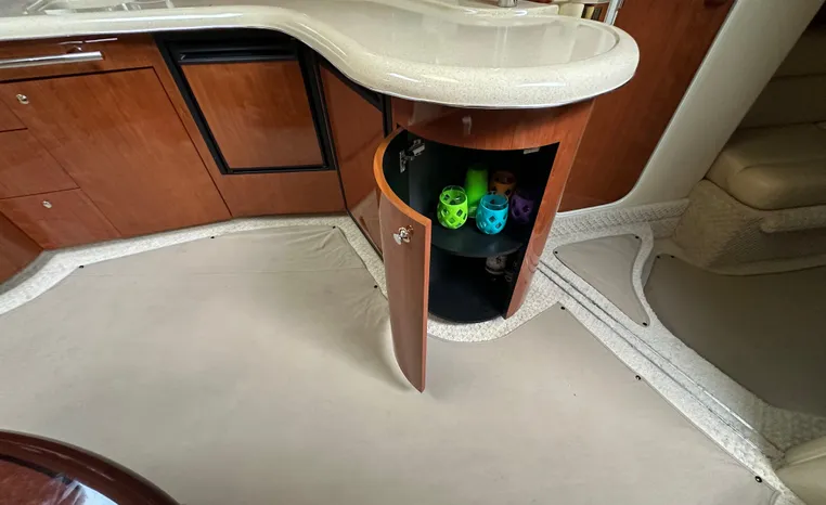 This vessel features Twin Cummins 6CTA 8.3 450-hp Diesel Engine's with approx. 1180 hours. Notable features include but are not limited to the following: Air-Conditioning & Heat (2-Units), (2) Head's (Vacuflush) w/Vanity/Sink/Shower (Note Stall-Shower Forward), Central Vacuum System, Windlass Anchor (w/Freshwater Washdown), Onan Generator, Electronics Package includes Garmin VHF Marine Radio, Dual Garmin 5212 w/GPS/Chartplotter, and Radar, Cockpit Wet Bar w/Sink/Refrigerator, Premium Fusion Sound System w/ JL Audio Speakers and Subwoofer, Above Windshield Isin Glass with Slant back Canvas, Removable Seagrass Cockpit Carpeting, and MUCH more!