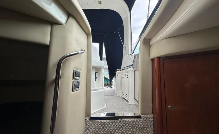 This vessel features Twin Cummins 6CTA 8.3 450-hp Diesel Engine's with approx. 1180 hours. Notable features include but are not limited to the following: Air-Conditioning & Heat (2-Units), (2) Head's (Vacuflush) w/Vanity/Sink/Shower (Note Stall-Shower Forward), Central Vacuum System, Windlass Anchor (w/Freshwater Washdown), Onan Generator, Electronics Package includes Garmin VHF Marine Radio, Dual Garmin 5212 w/GPS/Chartplotter, and Radar, Cockpit Wet Bar w/Sink/Refrigerator, Premium Fusion Sound System w/ JL Audio Speakers and Subwoofer, Above Windshield Isin Glass with Slant back Canvas, Removable Seagrass Cockpit Carpeting, and MUCH more!