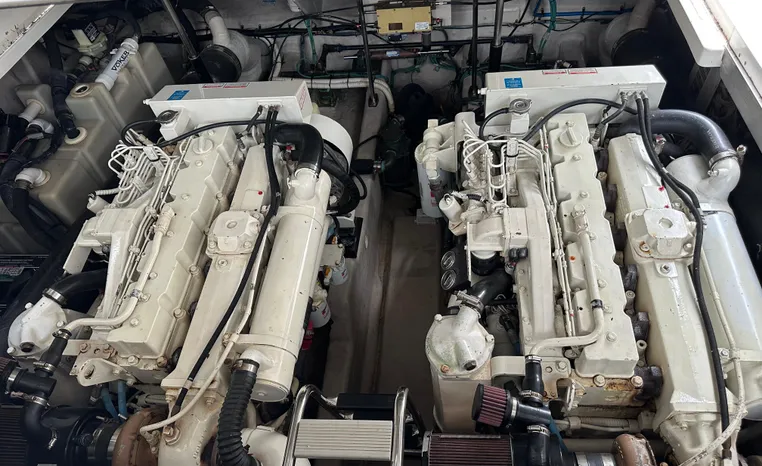 This vessel features Twin Cummins 6CTA 8.3 450-hp Diesel Engine's with approx. 1180 hours. Notable features include but are not limited to the following: Air-Conditioning & Heat (2-Units), (2) Head's (Vacuflush) w/Vanity/Sink/Shower (Note Stall-Shower Forward), Central Vacuum System, Windlass Anchor (w/Freshwater Washdown), Onan Generator, Electronics Package includes Garmin VHF Marine Radio, Dual Garmin 5212 w/GPS/Chartplotter, and Radar, Cockpit Wet Bar w/Sink/Refrigerator, Premium Fusion Sound System w/ JL Audio Speakers and Subwoofer, Above Windshield Isin Glass with Slant back Canvas, Removable Seagrass Cockpit Carpeting, and MUCH more!