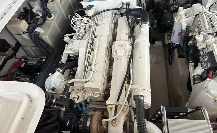 This vessel features Twin Cummins 6CTA 8.3 450-hp Diesel Engine's with approx. 1180 hours. Notable features include but are not limited to the following: Air-Conditioning & Heat (2-Units), (2) Head's (Vacuflush) w/Vanity/Sink/Shower (Note Stall-Shower Forward), Central Vacuum System, Windlass Anchor (w/Freshwater Washdown), Onan Generator, Electronics Package includes Garmin VHF Marine Radio, Dual Garmin 5212 w/GPS/Chartplotter, and Radar, Cockpit Wet Bar w/Sink/Refrigerator, Premium Fusion Sound System w/ JL Audio Speakers and Subwoofer, Above Windshield Isin Glass with Slant back Canvas, Removable Seagrass Cockpit Carpeting, and MUCH more!