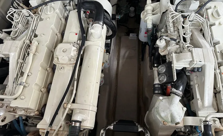This vessel features Twin Cummins 6CTA 8.3 450-hp Diesel Engine's with approx. 1180 hours. Notable features include but are not limited to the following: Air-Conditioning & Heat (2-Units), (2) Head's (Vacuflush) w/Vanity/Sink/Shower (Note Stall-Shower Forward), Central Vacuum System, Windlass Anchor (w/Freshwater Washdown), Onan Generator, Electronics Package includes Garmin VHF Marine Radio, Dual Garmin 5212 w/GPS/Chartplotter, and Radar, Cockpit Wet Bar w/Sink/Refrigerator, Premium Fusion Sound System w/ JL Audio Speakers and Subwoofer, Above Windshield Isin Glass with Slant back Canvas, Removable Seagrass Cockpit Carpeting, and MUCH more!