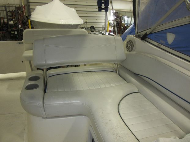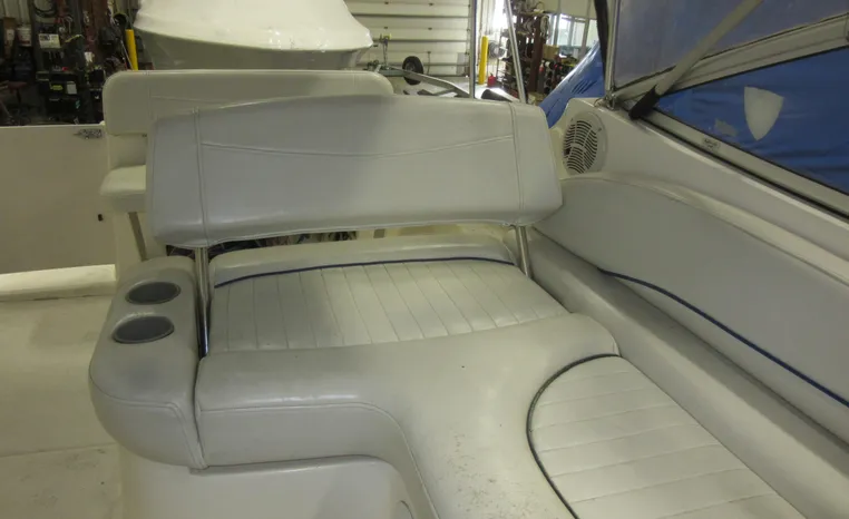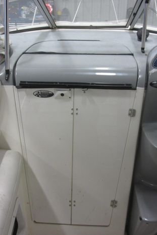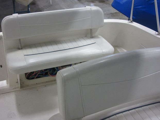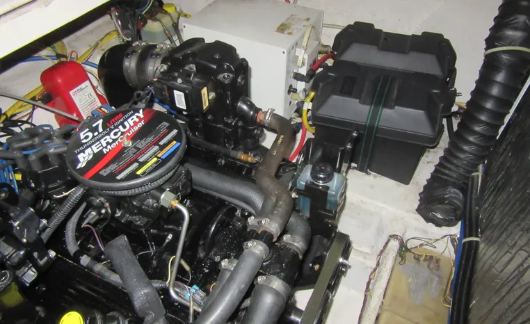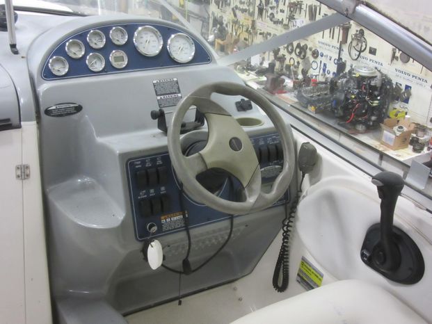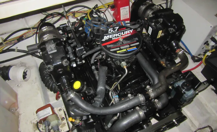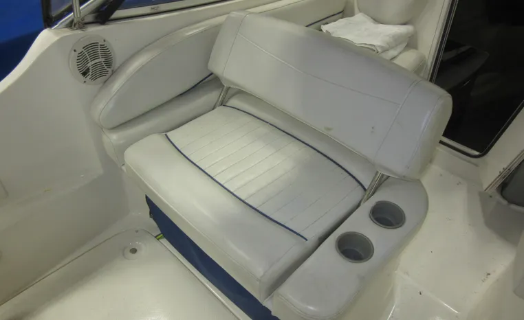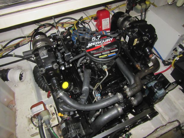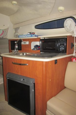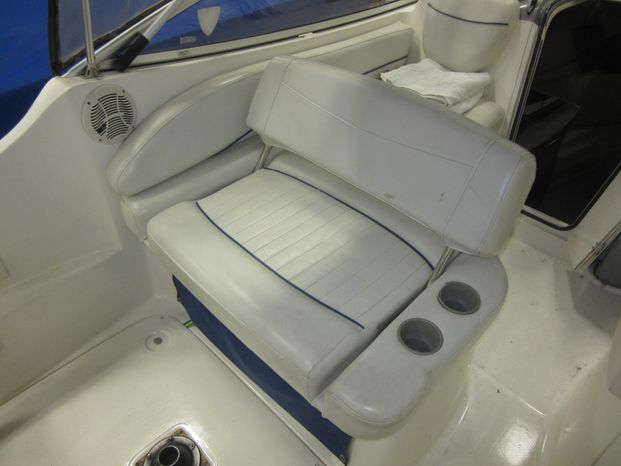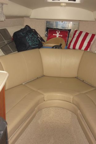 Bayliner's 245 Cruiser sports a comfortable cockpit and convenient cabin arrangement. The cockpit area includes a reversible portside companion seat -- converting from a forward facing backrest to a luxurious chaise lounge. Cabin accommodations include a neat vee berth dinette, nicely equipped galley, enclosed head compartment and a private mid cabin. This boat is ideal as an introduction to overnighting for a couple or young family! "Better Together" has just received completion of an engine replacement with a newly remanufactured Mercruiser 5.7L