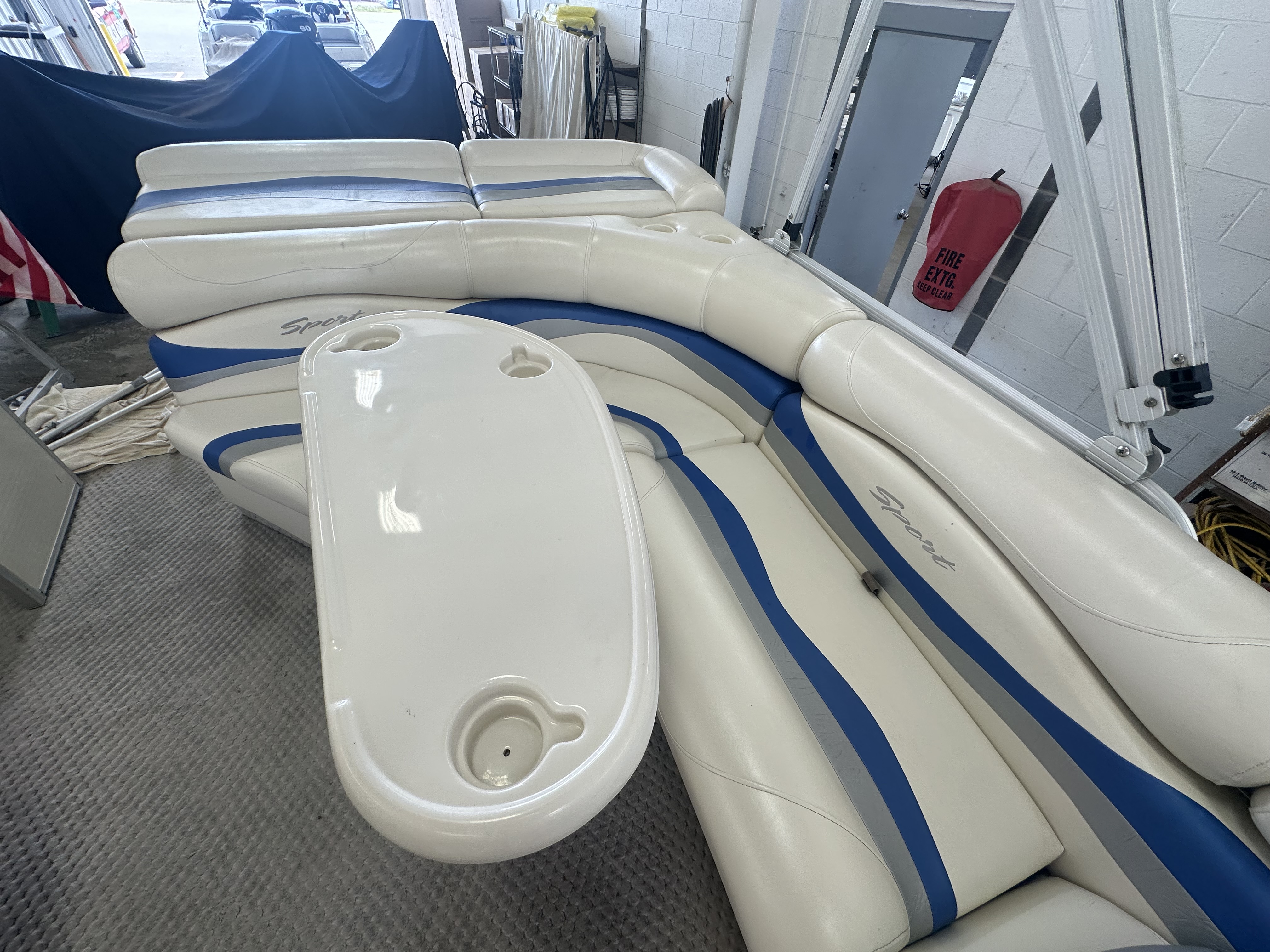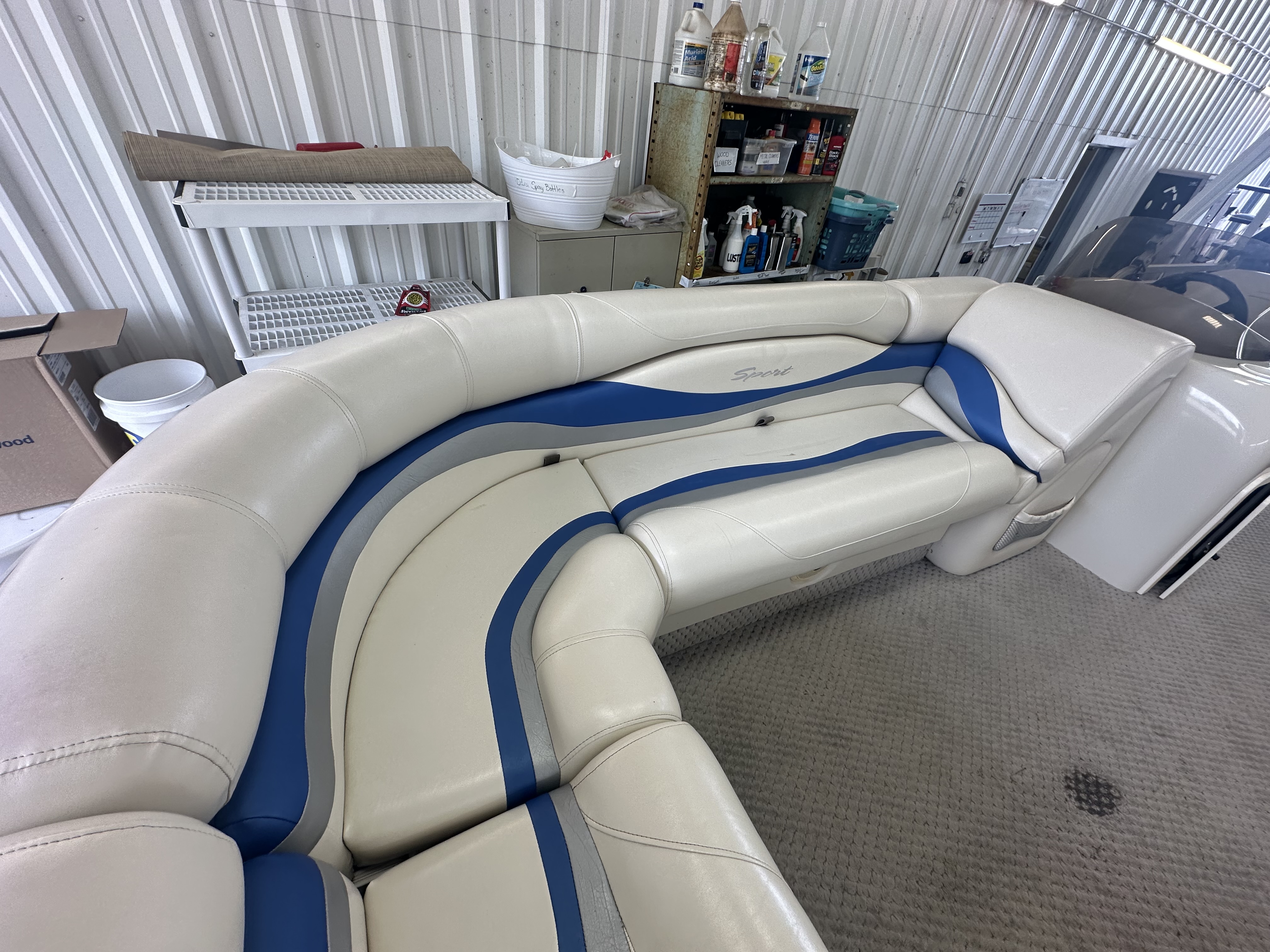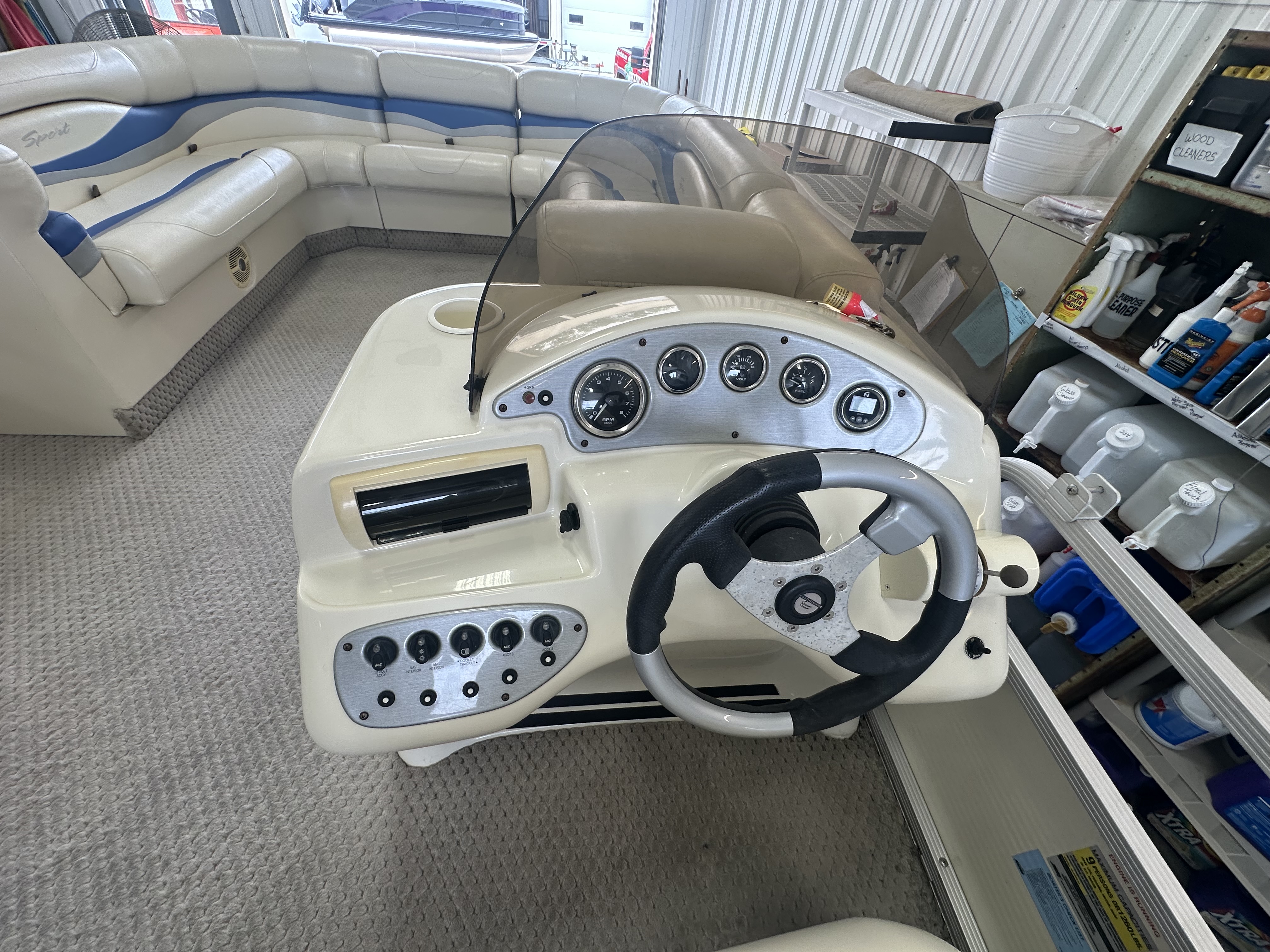 Boat also comes with full boat cover, bimini top, rear swim ladder, front docking lights, rubrail, movable bow gate seat for extra seating, removable boat table, stereo with speakers, American flag, power trim for the engine and much more!