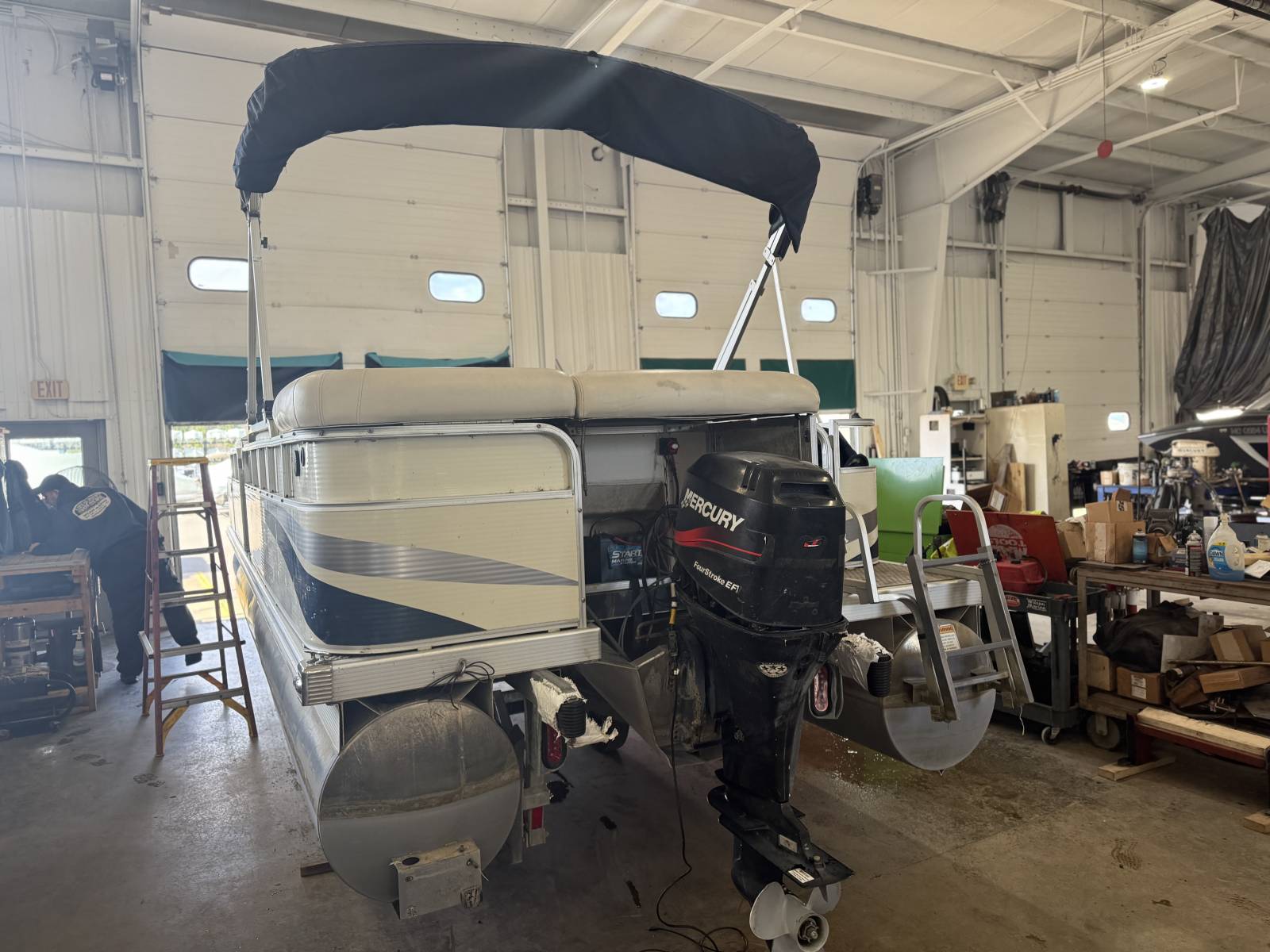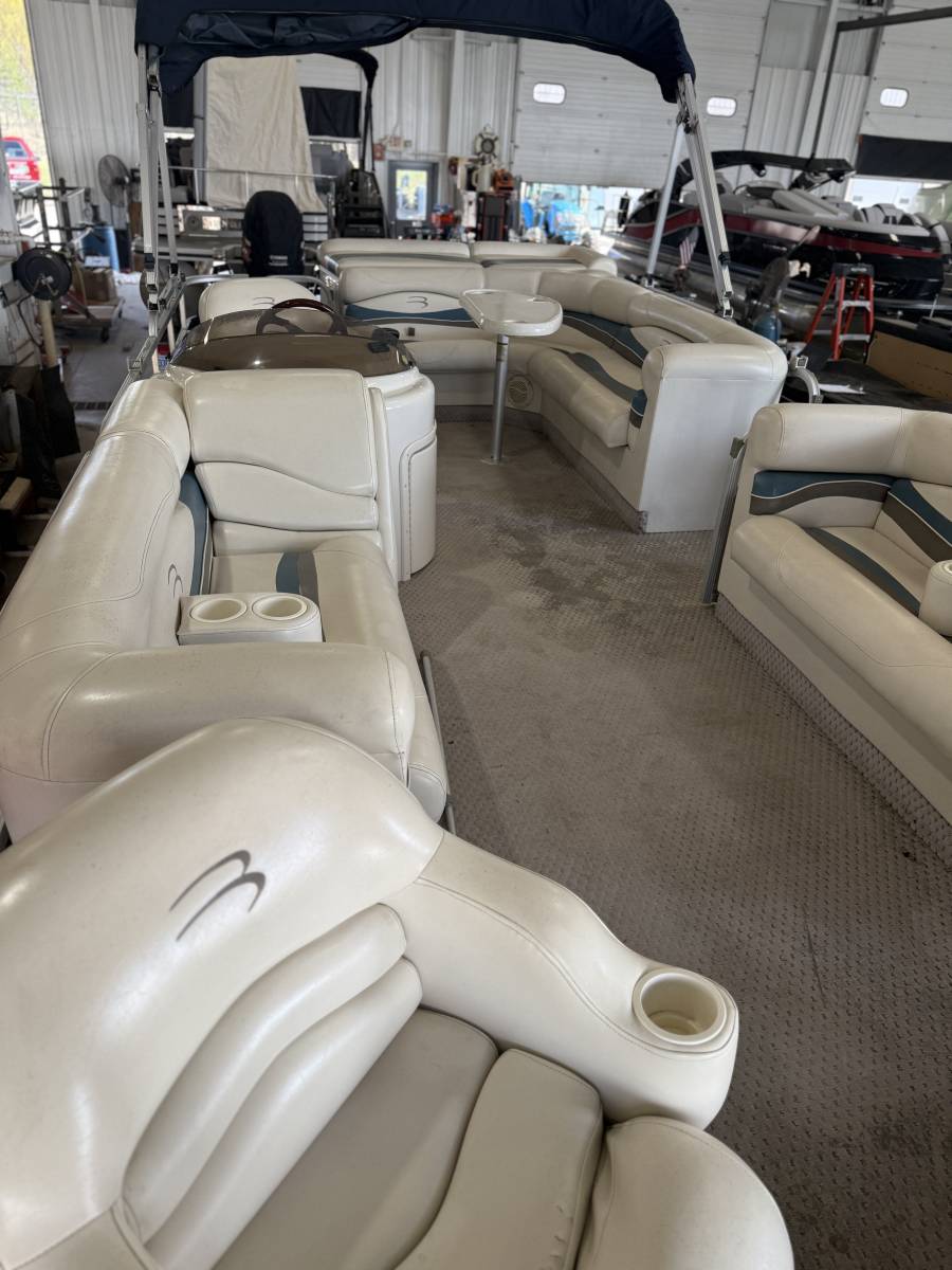 Nice pontoon ready for summer. This comes powered by a Mercury 60 ELPT Four stroke with 794 hours(Trailer in photos is not included in price)