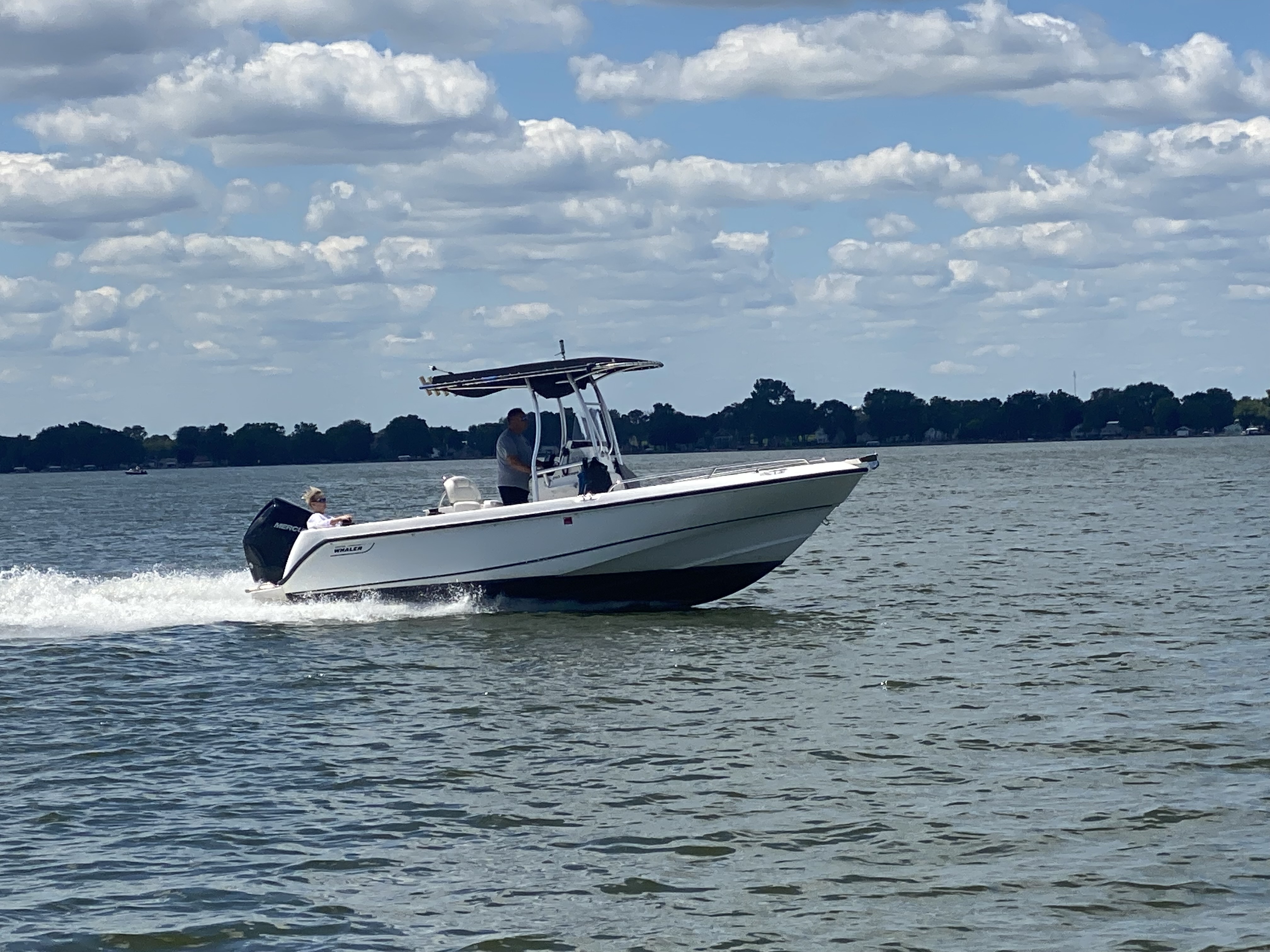 has a 2020 Merc 250 v8 outboard on it all new flooring.