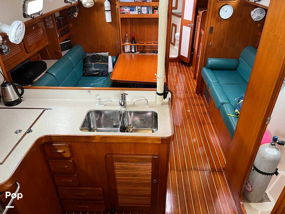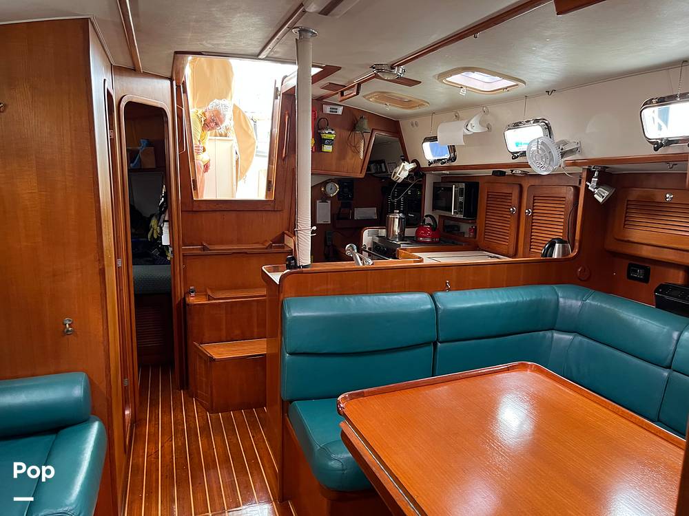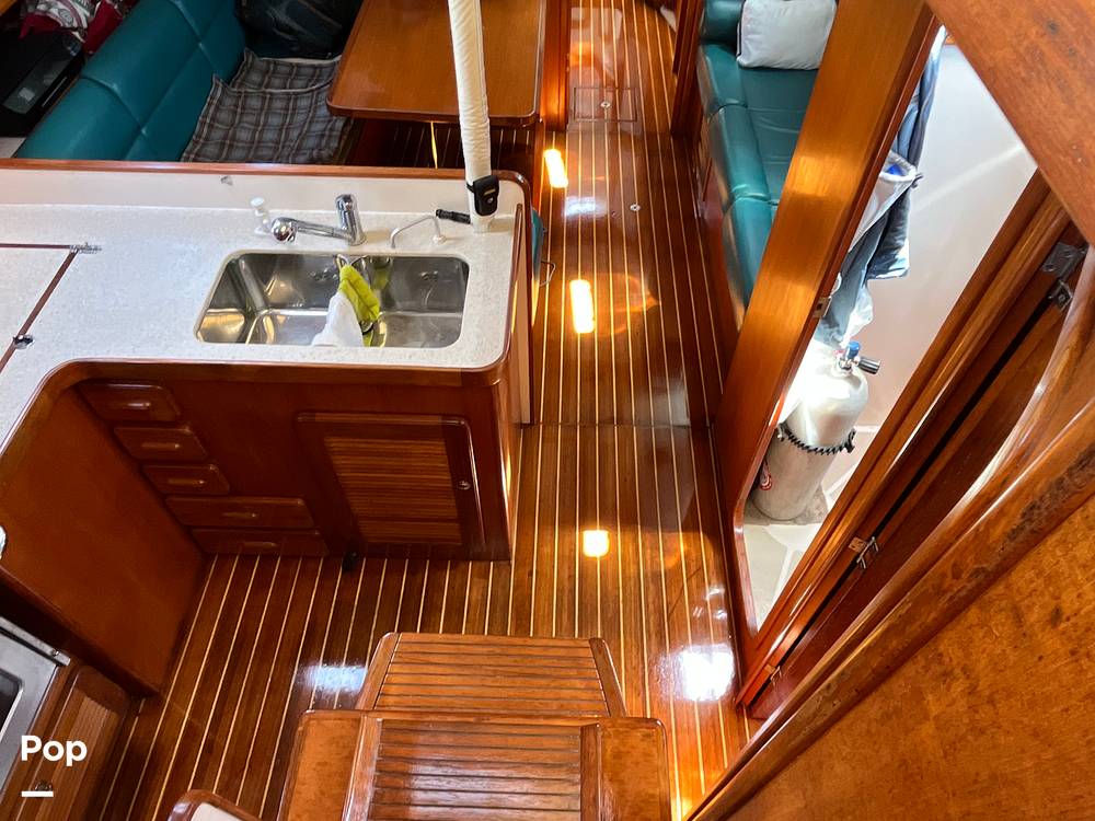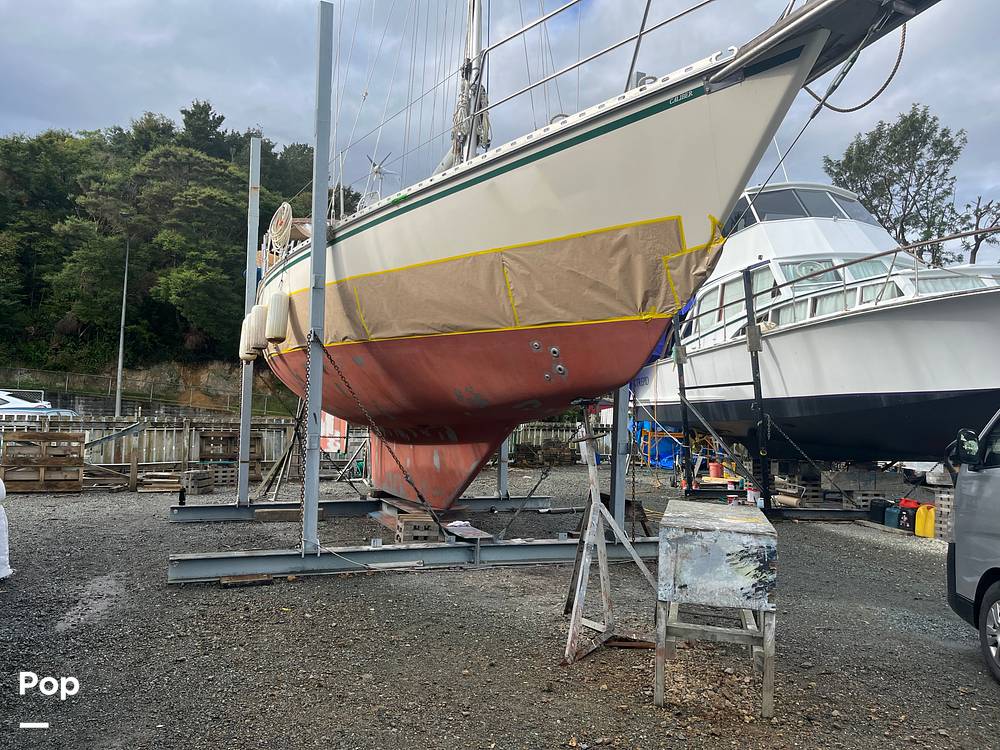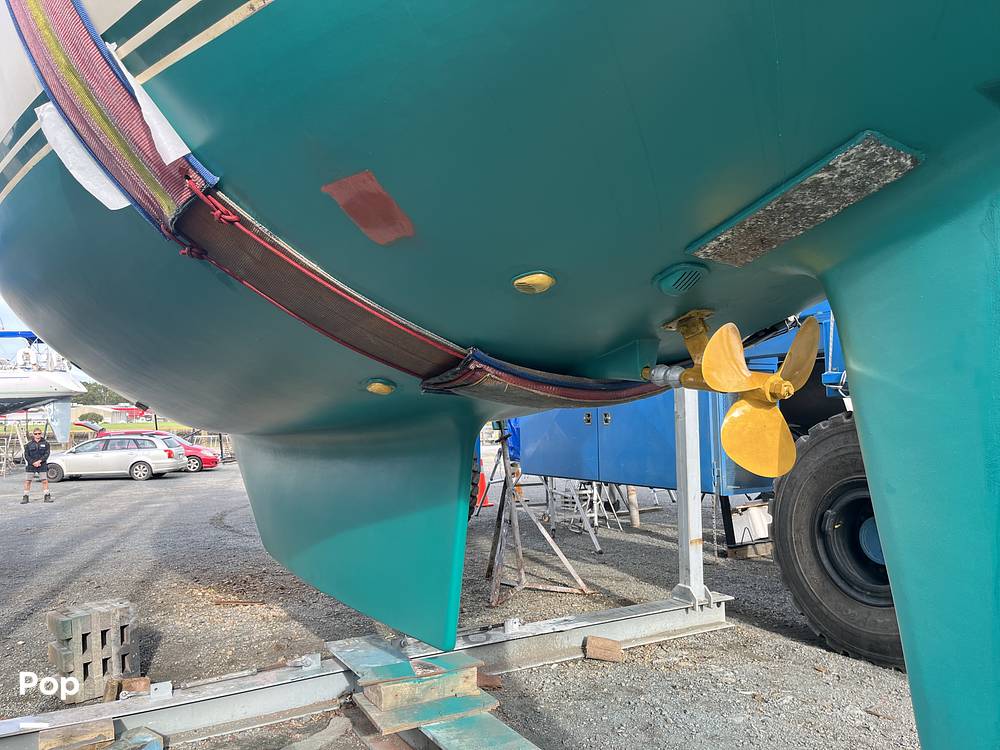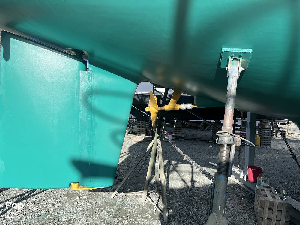 The interior offers 6 feet 4 inches of headroom and sleeping capacity for six. The owner recently spent 6,000 dollars on a professional revarnish of the cabin sole and galley areas. Systems include a 16,000 BTU air conditioner, chartplotter, radar, and a freshwater washdown at the bow. This vessel is ready for its next offshore chapter.