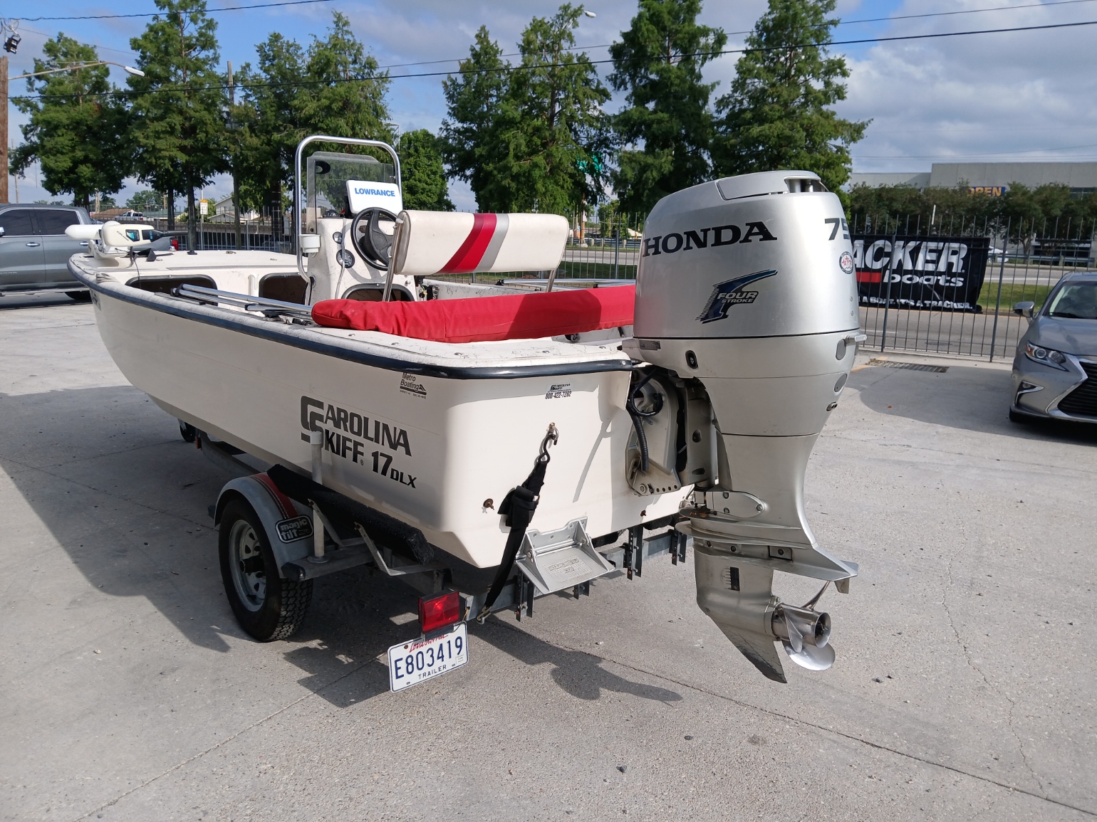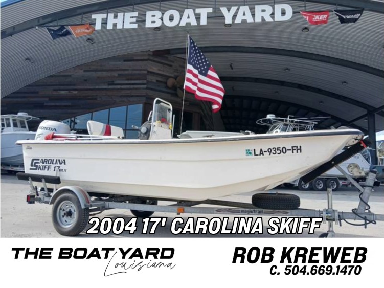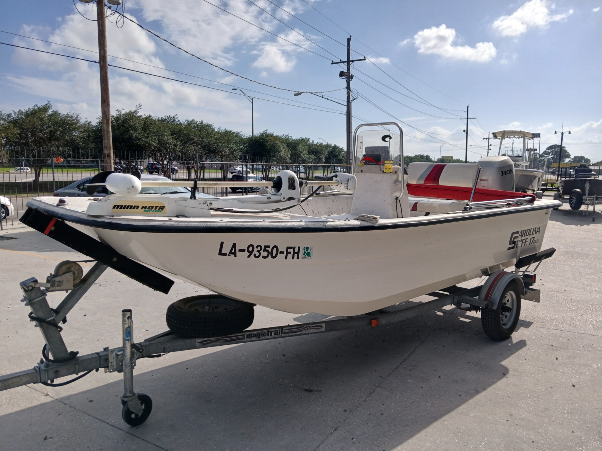 The 2004 Carolina Skiff 17' is a durable and highly versatile line of 17-foot boats renowned for their stable, wide-beamed hull design and 100% composite, wood-free construction. This robust construction makes them low-maintenance and resistant to rot in harsh marine environments. The flat or near-flat bottom hull provides an exceptionally shallow draft, allowing access to remote creeks, marshes, and flats not reachable by other boat types. Available in models like the DLX, Semi-V, and Sea Chaser, they offered a spacious, open deck layout that served as an ideal, stable platform for saltwater fishing and general recreation. Overall, the 2004 17' models were designed as practical, reliable, and versatile vessels suited for a wide range of inshore and coastal boating activities.