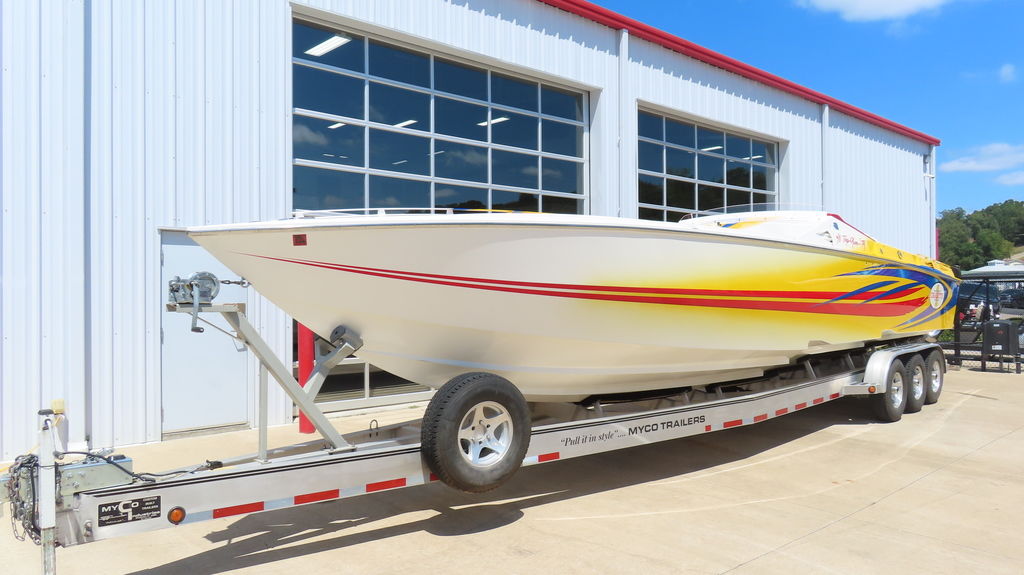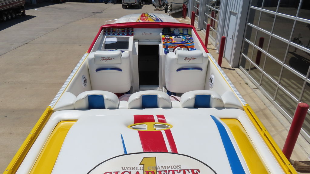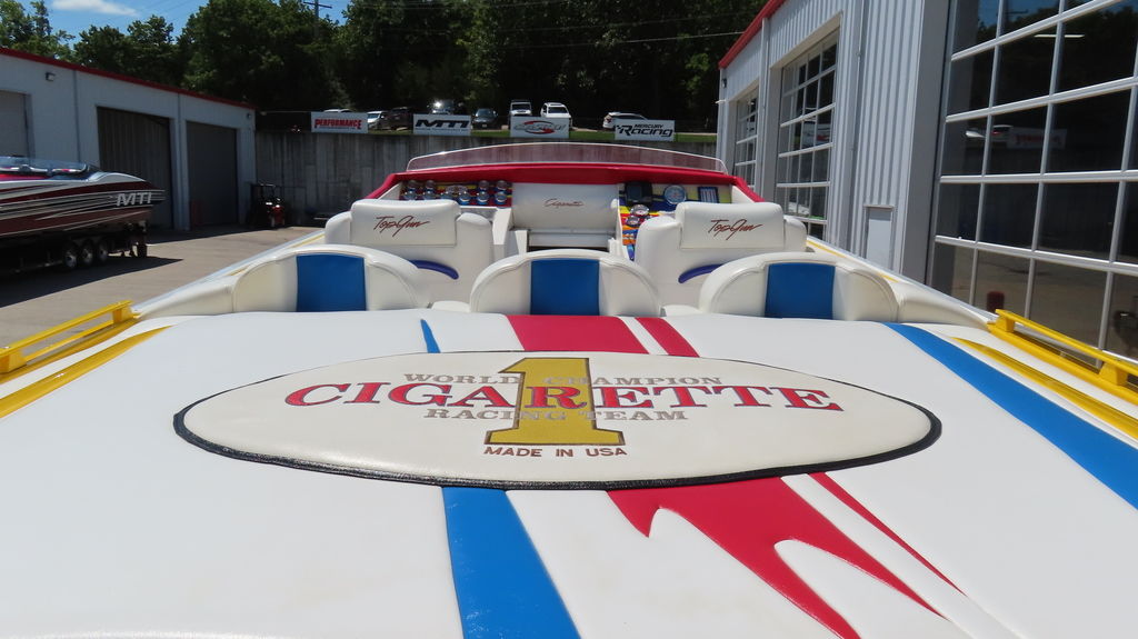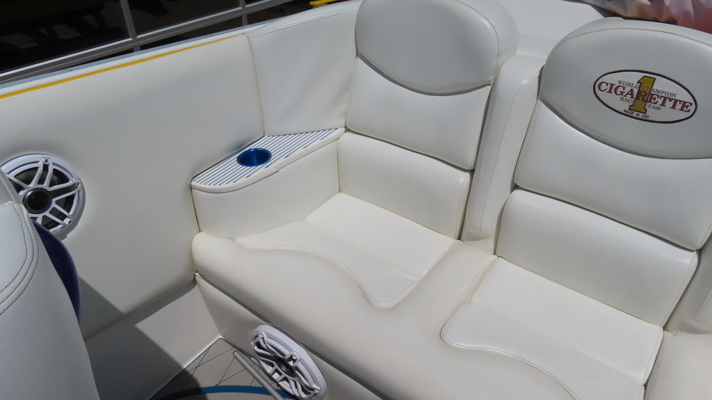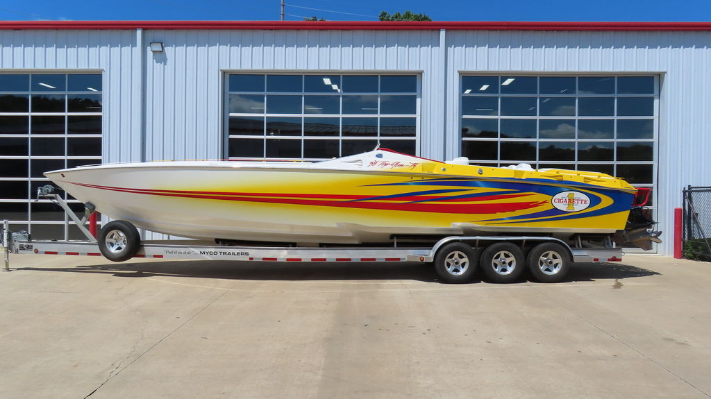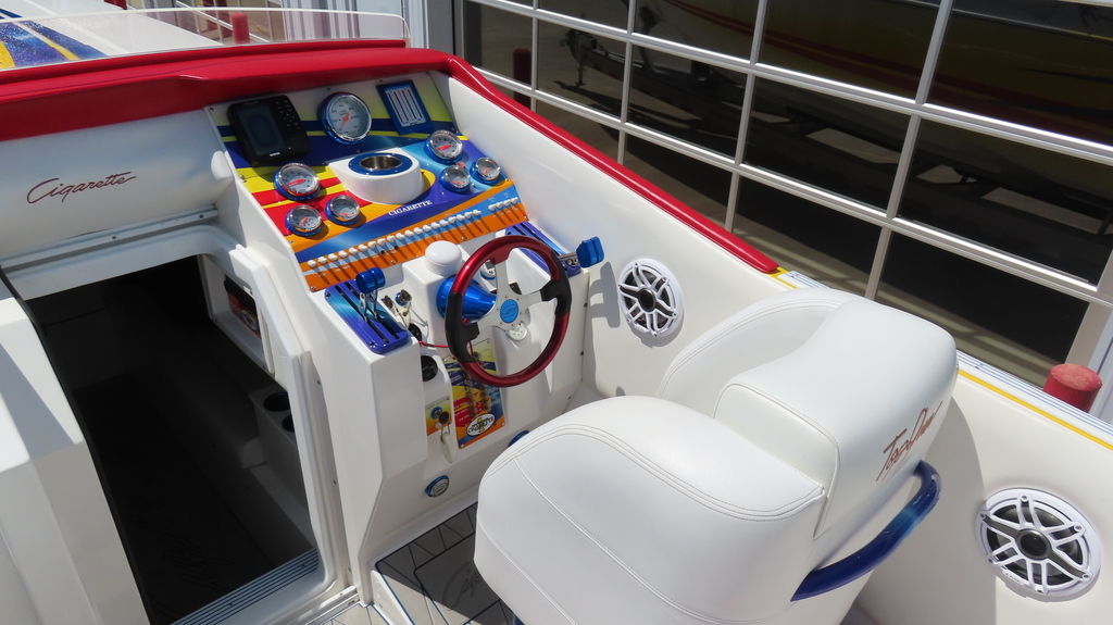 2004 Cigarette 38 Top Gun Powered by Twin Mercury 525s with only 1.5 hours on top ends, 335 Hours on the Hull, Bravo XR Drives, regularly maintained at Performance Boat Center, 380 Kplanes, Garmin GPS, Livorsi gauges, GPS speedometer, Livorsi digital indicators, depth sounder, JL stereo with dash remote, Sea Deck flooring, electric bolsters, Full cabin with porta potty, fender racks in bilge, Swim Platform, Full Mooring cover, MYCO trailer included.