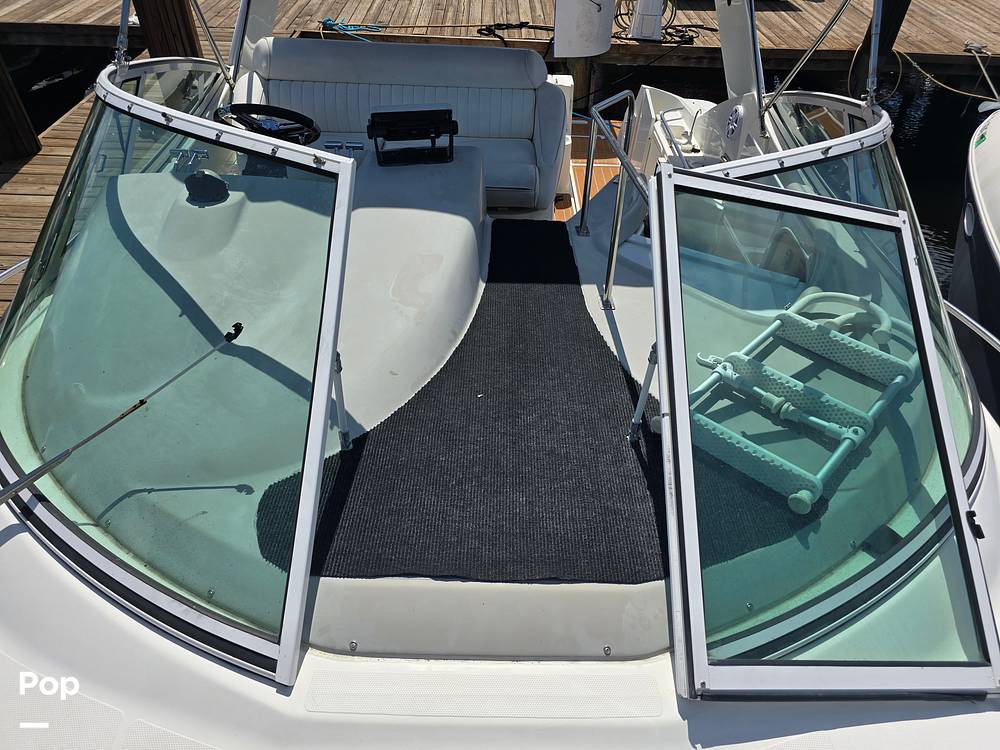There's a walk-through windshield here for access to the bow and windlass as well as side decks.