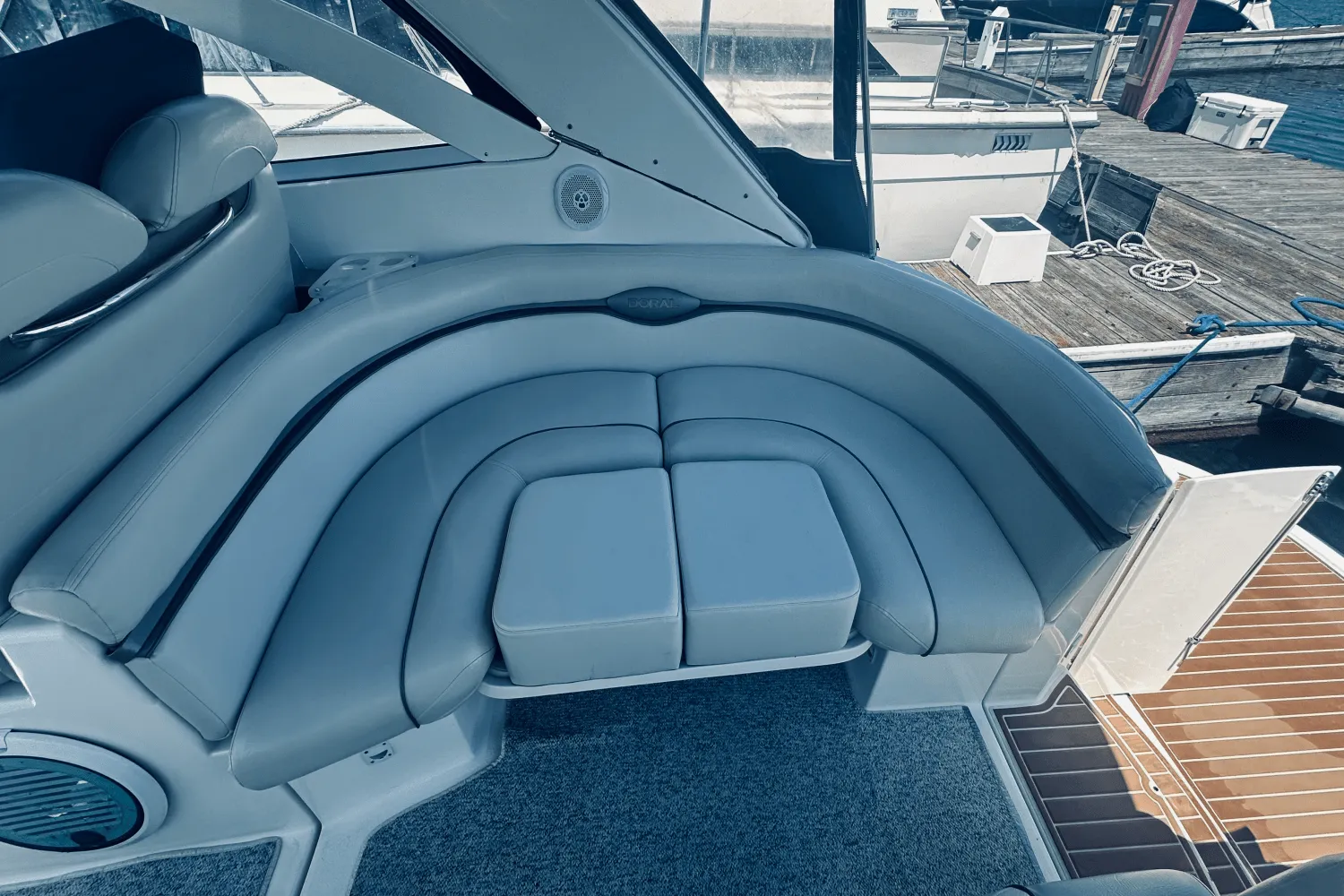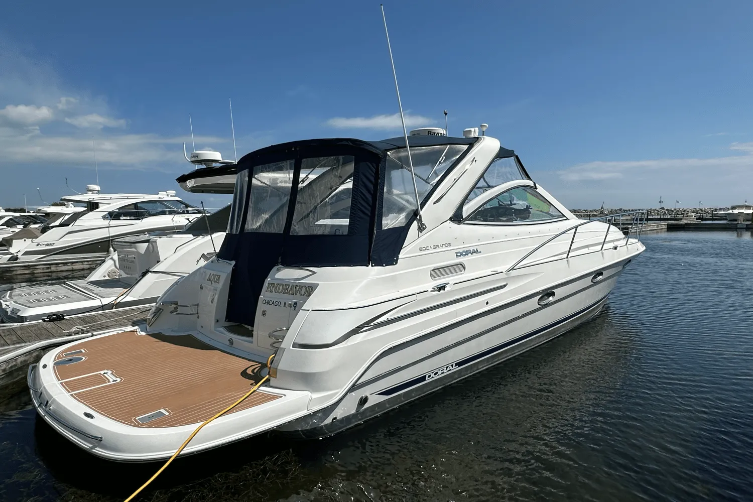 Experience timeless design and trusted performance with this 2004 Doral 360 Boca Grande, a single owner boat that was meticuously maintained. With 1,500 hours on twin Mercruiser 496MAG engines, this cruiser has been lovingly cared for and consistently serviced. The cockpit is ideal for entertaining, with plush wraparound seating, a wet bar, and generous space for relaxing or dining al fresco. Below deck, enjoy rich cherrywood cabinetry, a full galley, and a cozy layout that sleeps up to six perfect for weekend escapes or longer adventures. This boat isn’t just clean it’s turn-key and ready to create new memories. From the spotless bilge to the smooth ride, every inch reflects pride of ownership.