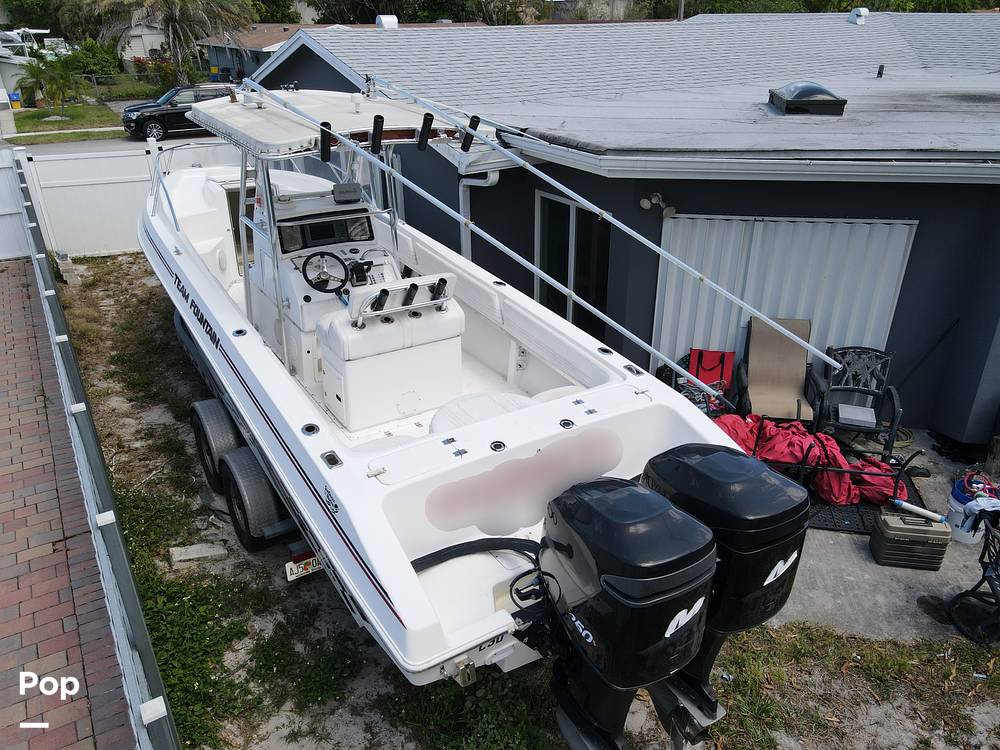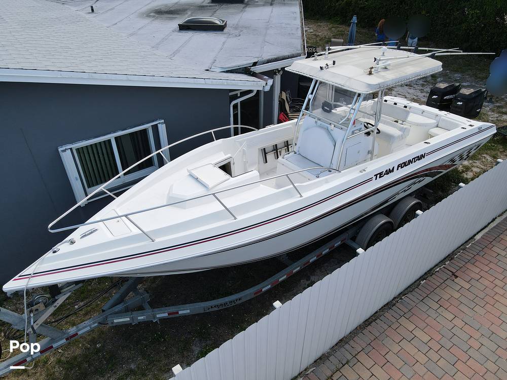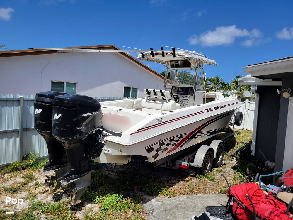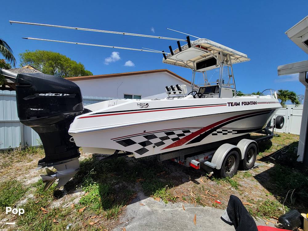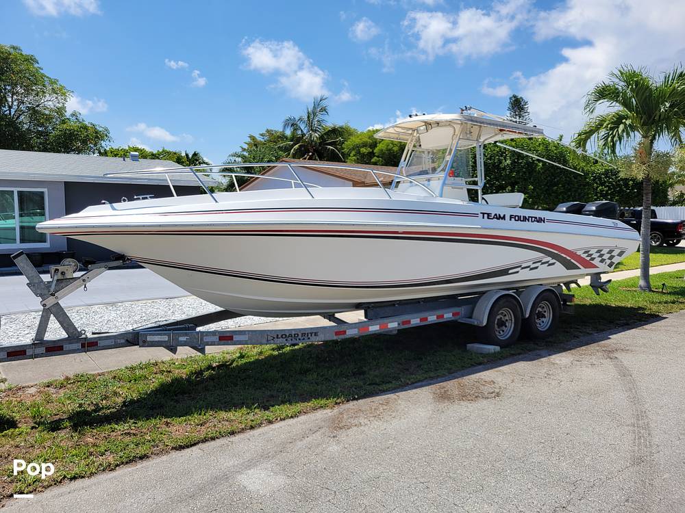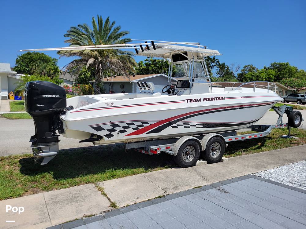 This 31 Fountain is great example of well-kept boat. This boat only has 209 total hours on the meter. The boat has been stored indoors and covered most of its life. The boat looks very sporty with its vivid graphics.