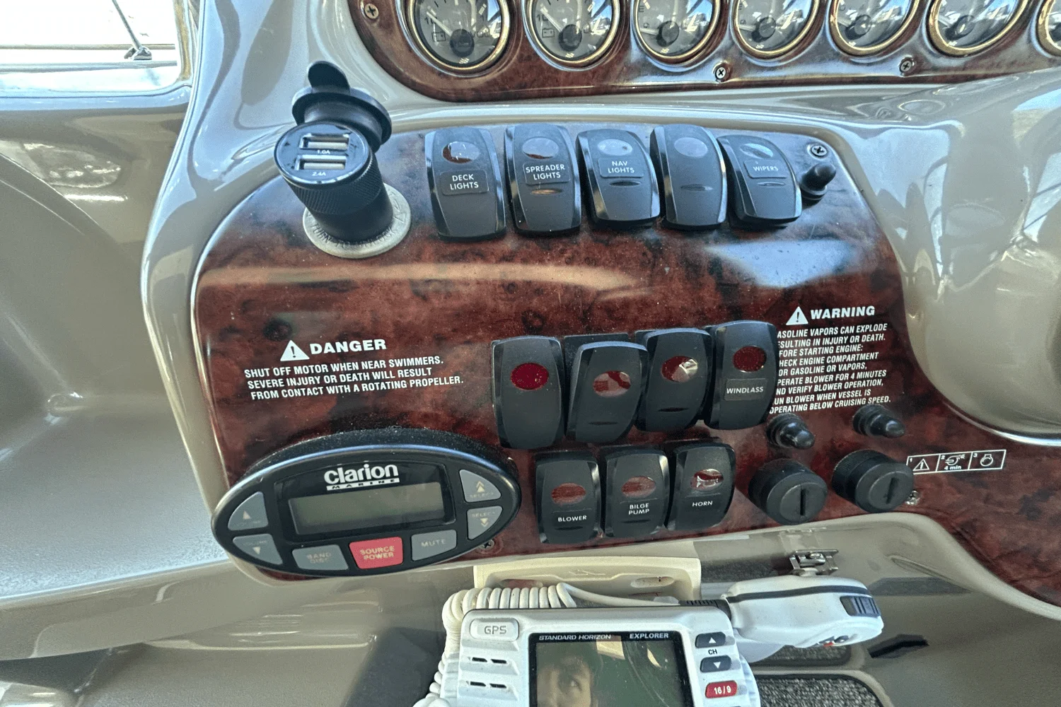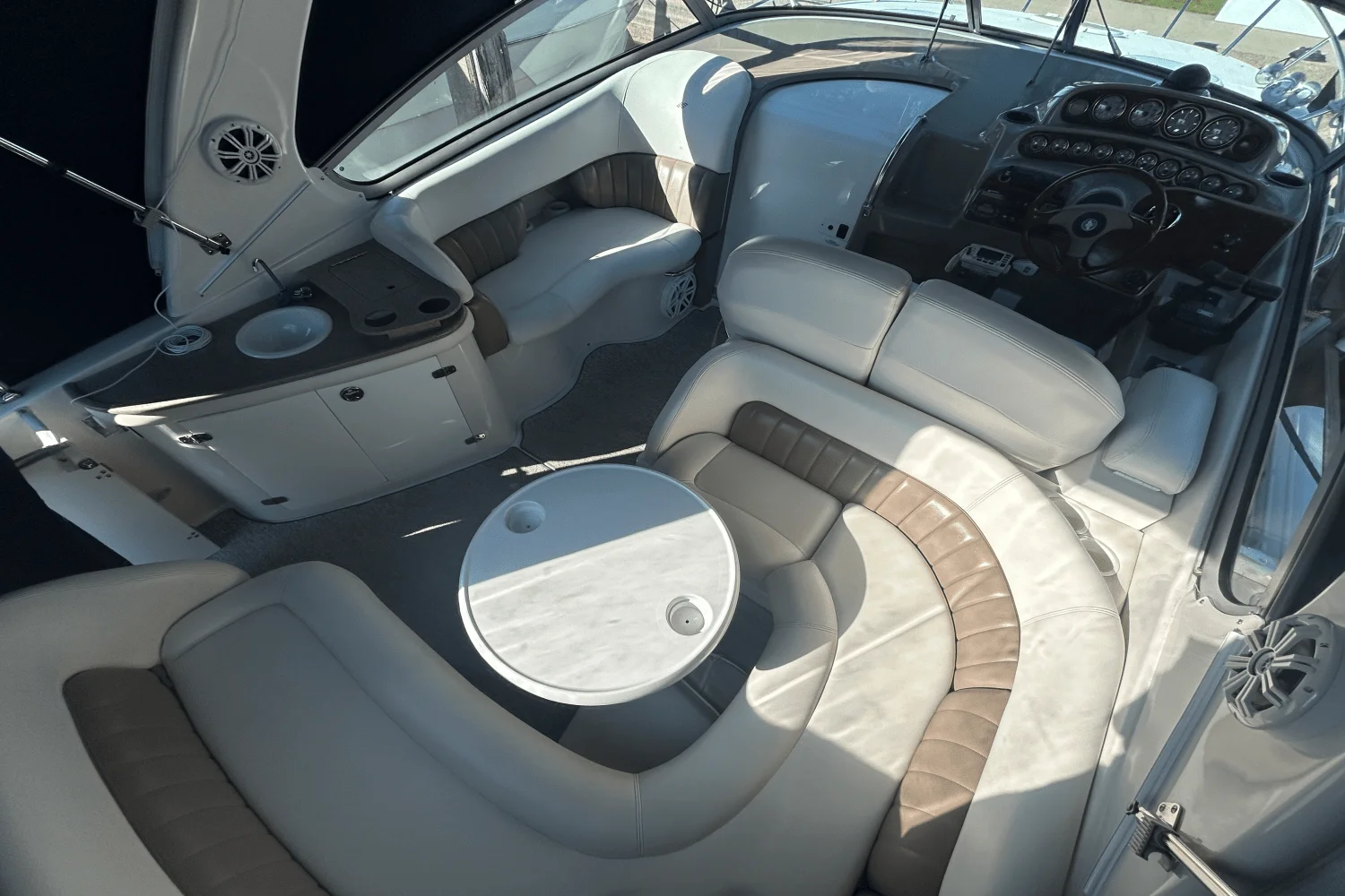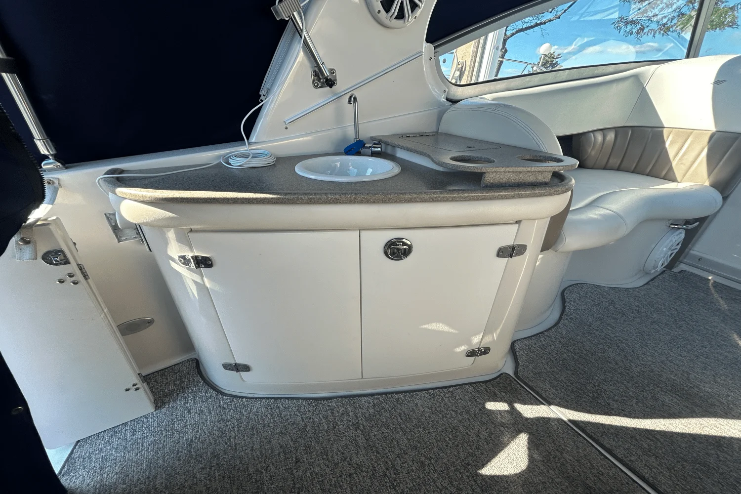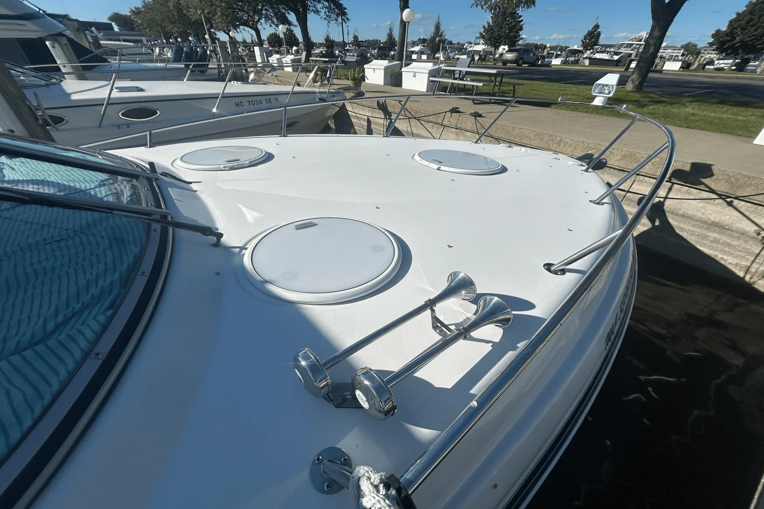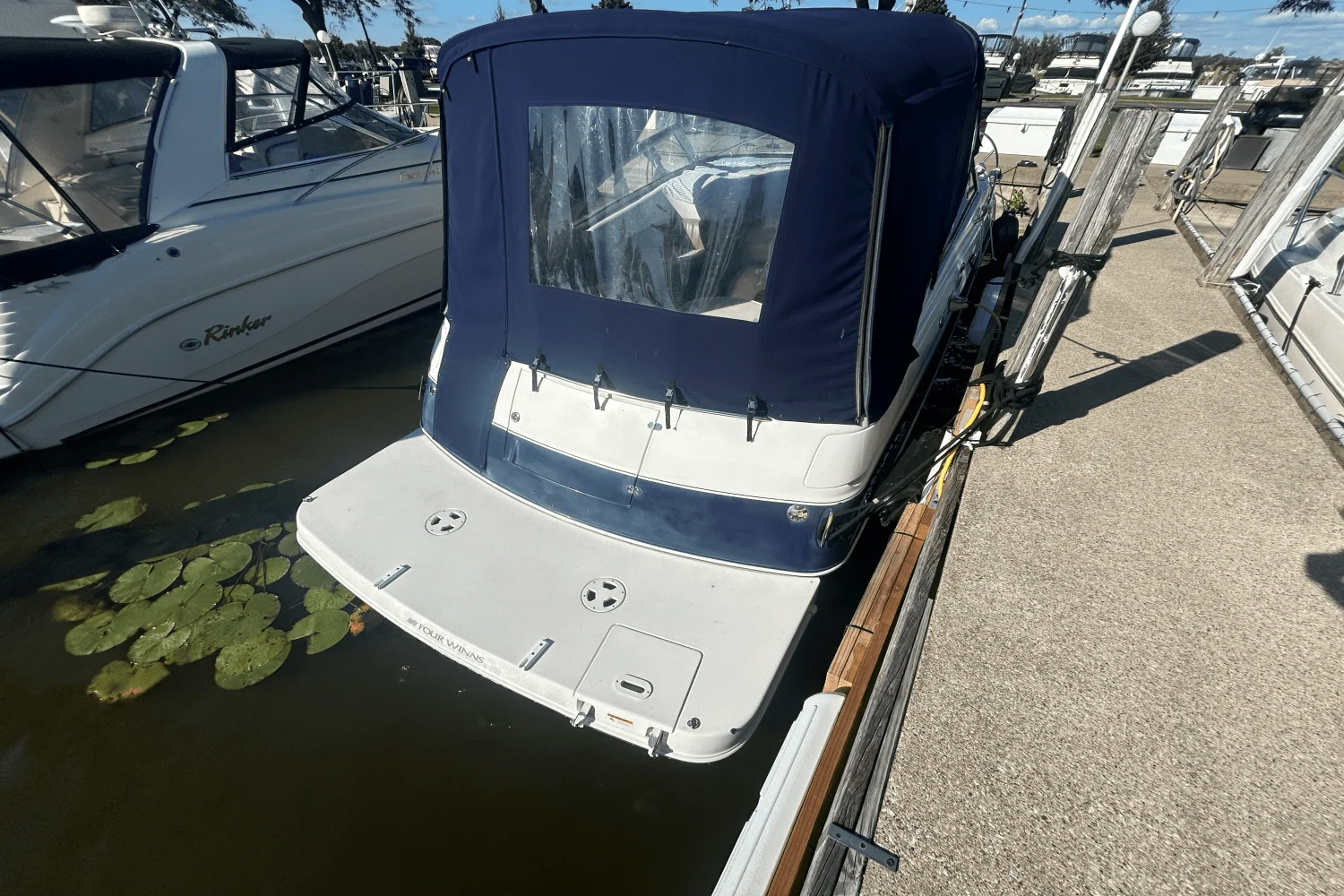 2004 Four Winns 288 Vista Freshwater | Twin Volvo Penta 4.3 GXI | Low Hours | Well-Equipped Cruiser This 2004 Four Winns 288 Vista is a clean, freshwater-kept express cruiser that offers the perfect blend of performance, comfort, and style. Powered by twin Volvo Penta 4.3L GXI engines (225hp each) with only 280 hours, it delivers dependable power and handling for long weekends on the water. The boat has been well maintained and thoughtfully updated, including a updated Fusion stereo system with new JL speakers and subwoofer (8 inch), giving you modern entertainment on board. Inside, you’ll find a well-appointed cabin with a cherry wood interior, convertible dinette, forward berth, aft cabin, and a full galley featuring a refrigerator, stove, microwave, and sink. The built-in cooler and ample storage make entertaining simple and convenient. On deck, this Vista is equally versatile, highlights include a full camper canvas, cockpit wet bar with sink, integrated swim platform with ladder, transom shower, and plenty of seating for guests. Canvas and Eisenglass are in good condition, providing protection from the elements while still offering an open feel when cruising on sunny days. Electronics and systems include a windlass anchor, spotlight, light up speakers on the tower with remote, and shore power connections. For extended trips, the boat is outfitted with a hot water heater and dual battery setup with switch. With its low hours, freshwater history, and recent upgrades, this Four Winns 288 Vista stands out as a turnkey family cruiser that’s ready for the season. Whether you’re looking for long weekend getaways or day cruises with friends, this boat checks all the boxes. Available now through SkipperBud’s in Grand Haven. Boat is onsight and available for private showings.