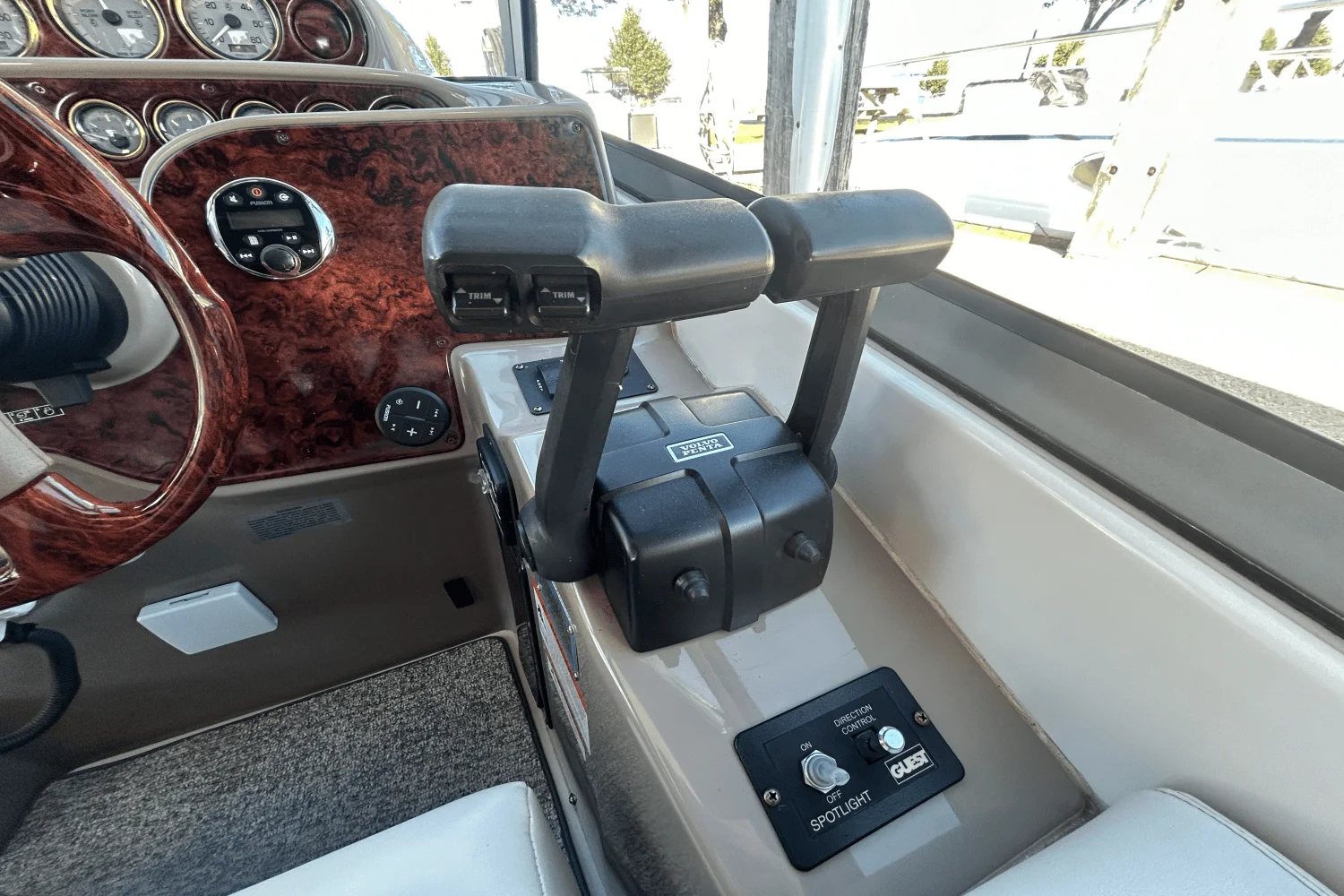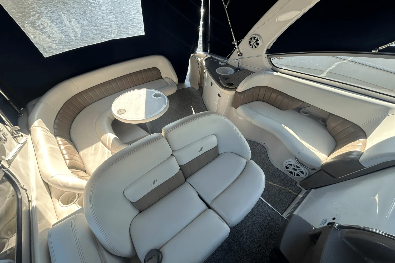 2004 Four Winns 288 Vista Freshwater | Twin Volvo Penta 4.3 GXI | Low Hours | Well-Equipped Cruiser This 2004 Four Winns 288 Vista is a clean, freshwater-kept express cruiser that offers the perfect blend of performance, comfort, and style. Powered by twin Volvo Penta 4.3L GXI engines (225hp each) with only 280 hours, it delivers dependable power and handling for long weekends on the water. The boat has been well maintained and thoughtfully updated, including a updated Fusion stereo system with new JL speakers and subwoofer (8 inch), giving you modern entertainment on board. Inside, you’ll find a well-appointed cabin with a cherry wood interior, convertible dinette, forward berth, aft cabin, and a full galley featuring a refrigerator, stove, microwave, and sink. The built-in cooler and ample storage make entertaining simple and convenient. On deck, this Vista is equally versatile, highlights include a full camper canvas, cockpit wet bar with sink, integrated swim platform with ladder, transom shower, and plenty of seating for guests. Canvas and Eisenglass are in good condition, providing protection from the elements while still offering an open feel when cruising on sunny days. Electronics and systems include a windlass anchor, spotlight, light up speakers on the tower with remote, and shore power connections. For extended trips, the boat is outfitted with a hot water heater and dual battery setup with switch. With its low hours, freshwater history, and recent upgrades, this Four Winns 288 Vista stands out as a turnkey family cruiser that’s ready for the season. Whether you’re looking for long weekend getaways or day cruises with friends, this boat checks all the boxes. Available now through SkipperBud’s in Grand Haven. Boat is onsight and available for private showings.