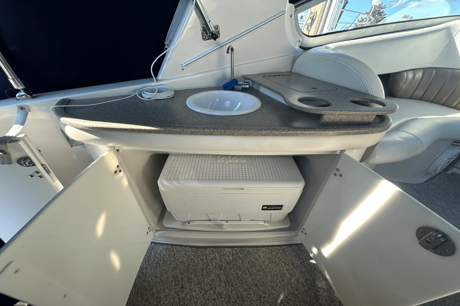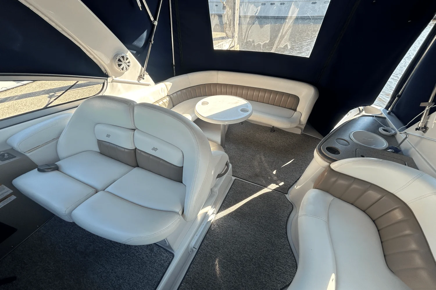 2004 Four Winns 288 Vista Freshwater | Twin Volvo Penta 4.3 GXI | Low Hours | Well-Equipped Cruiser This 2004 Four Winns 288 Vista is a clean, freshwater-kept express cruiser that offers the perfect blend of performance, comfort, and style. Powered by twin Volvo Penta 4.3L GXI engines (225hp each) with only 280 hours, it delivers dependable power and handling for long weekends on the water. The boat has been well maintained and thoughtfully updated, including a updated Fusion stereo system with new JL speakers and subwoofer (8 inch), giving you modern entertainment on board. Inside, you’ll find a well-appointed cabin with a cherry wood interior, convertible dinette, forward berth, aft cabin, and a full galley featuring a refrigerator, stove, microwave, and sink. The built-in cooler and ample storage make entertaining simple and convenient. On deck, this Vista is equally versatile, highlights include a full camper canvas, cockpit wet bar with sink, integrated swim platform with ladder, transom shower, and plenty of seating for guests. Canvas and Eisenglass are in good condition, providing protection from the elements while still offering an open feel when cruising on sunny days. Electronics and systems include a windlass anchor, spotlight, light up speakers on the tower with remote, and shore power connections. For extended trips, the boat is outfitted with a hot water heater and dual battery setup with switch. With its low hours, freshwater history, and recent upgrades, this Four Winns 288 Vista stands out as a turnkey family cruiser that’s ready for the season. Whether you’re looking for long weekend getaways or day cruises with friends, this boat checks all the boxes. Available now through SkipperBud’s in Grand Haven. Boat is onsight and available for private showings.