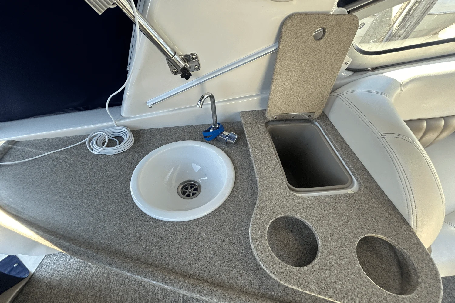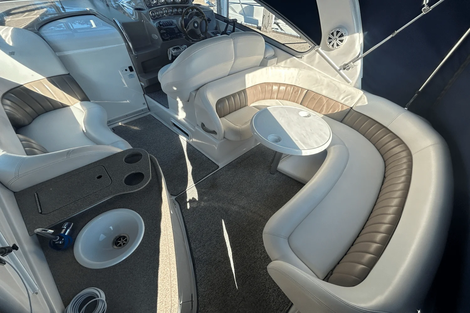 2004 Four Winns 288 Vista Freshwater | Twin Volvo Penta 4.3 GXI | Low Hours | Well-Equipped Cruiser This 2004 Four Winns 288 Vista is a clean, freshwater-kept express cruiser that offers the perfect blend of performance, comfort, and style. Powered by twin Volvo Penta 4.3L GXI engines (225hp each) with only 280 hours, it delivers dependable power and handling for long weekends on the water. The boat has been well maintained and thoughtfully updated, including a updated Fusion stereo system with new JL speakers and subwoofer (8 inch), giving you modern entertainment on board. Inside, you’ll find a well-appointed cabin with a cherry wood interior, convertible dinette, forward berth, aft cabin, and a full galley featuring a refrigerator, stove, microwave, and sink. The built-in cooler and ample storage make entertaining simple and convenient. On deck, this Vista is equally versatile, highlights include a full camper canvas, cockpit wet bar with sink, integrated swim platform with ladder, transom shower, and plenty of seating for guests. Canvas and Eisenglass are in good condition, providing protection from the elements while still offering an open feel when cruising on sunny days. Electronics and systems include a windlass anchor, spotlight, light up speakers on the tower with remote, and shore power connections. For extended trips, the boat is outfitted with a hot water heater and dual battery setup with switch. With its low hours, freshwater history, and recent upgrades, this Four Winns 288 Vista stands out as a turnkey family cruiser that’s ready for the season. Whether you’re looking for long weekend getaways or day cruises with friends, this boat checks all the boxes. Available now through SkipperBud’s in Grand Haven. Boat is onsight and available for private showings.