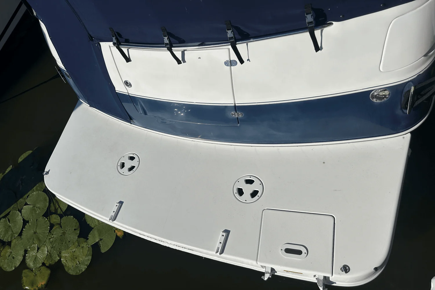 2004 Four Winns 288 Vista Freshwater | Twin Volvo Penta 4.3 GXI | Low Hours | Well-Equipped Cruiser This 2004 Four Winns 288 Vista is a clean, freshwater-kept express cruiser that offers the perfect blend of performance, comfort, and style. Powered by twin Volvo Penta 4.3L GXI engines (225hp each) with only 280 hours, it delivers dependable power and handling for long weekends on the water. The boat has been well maintained and thoughtfully updated, including a updated Fusion stereo system with new JL speakers and subwoofer (8 inch), giving you modern entertainment on board. Inside, you’ll find a well-appointed cabin with a cherry wood interior, convertible dinette, forward berth, aft cabin, and a full galley featuring a refrigerator, stove, microwave, and sink. The built-in cooler and ample storage make entertaining simple and convenient. On deck, this Vista is equally versatile, highlights include a full camper canvas, cockpit wet bar with sink, integrated swim platform with ladder, transom shower, and plenty of seating for guests. Canvas and Eisenglass are in good condition, providing protection from the elements while still offering an open feel when cruising on sunny days. Electronics and systems include a windlass anchor, spotlight, light up speakers on the tower with remote, and shore power connections. For extended trips, the boat is outfitted with a hot water heater and dual battery setup with switch. With its low hours, freshwater history, and recent upgrades, this Four Winns 288 Vista stands out as a turnkey family cruiser that’s ready for the season. Whether you’re looking for long weekend getaways or day cruises with friends, this boat checks all the boxes. Available now through SkipperBud’s in Grand Haven. Boat is onsight and available for private showings.