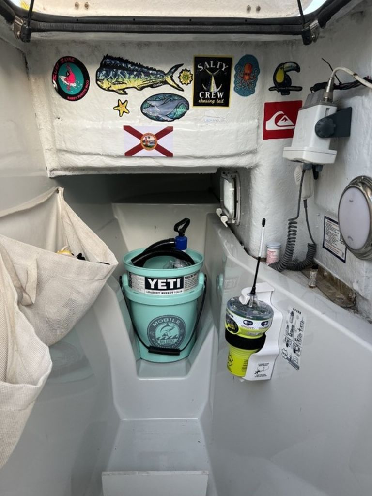 -Stbd fwd side big bilge access to thru hull and raw water/ live well pump- new April 23’