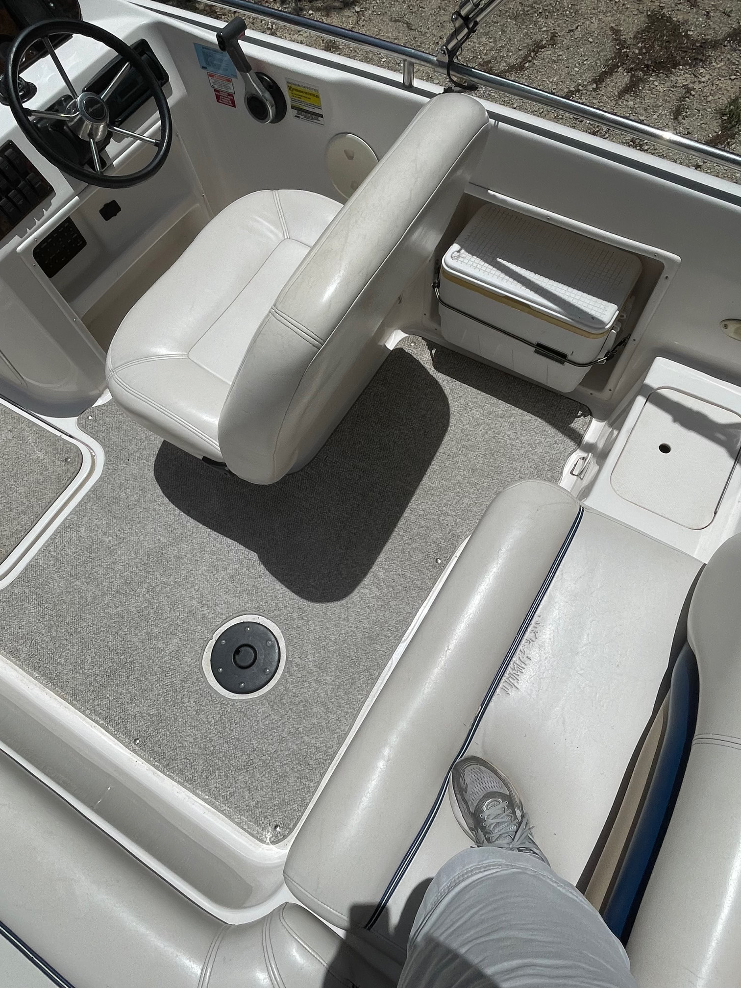 • Boat has live well, 2 storable front fishing chairs, and 1 storable table