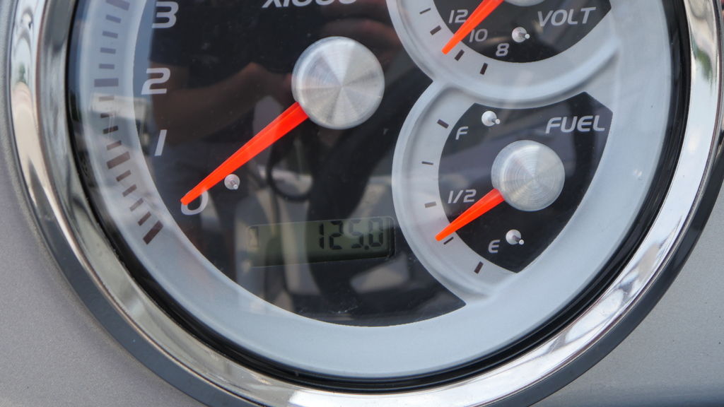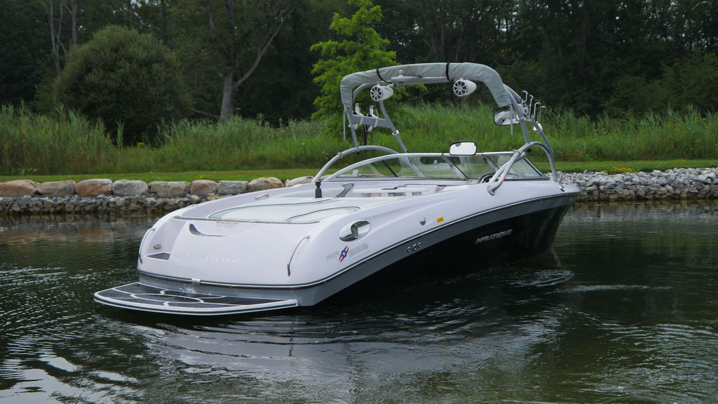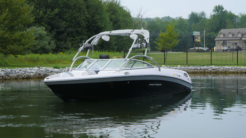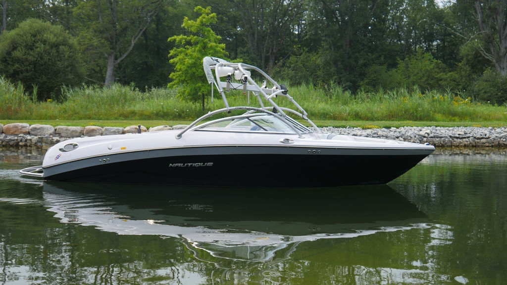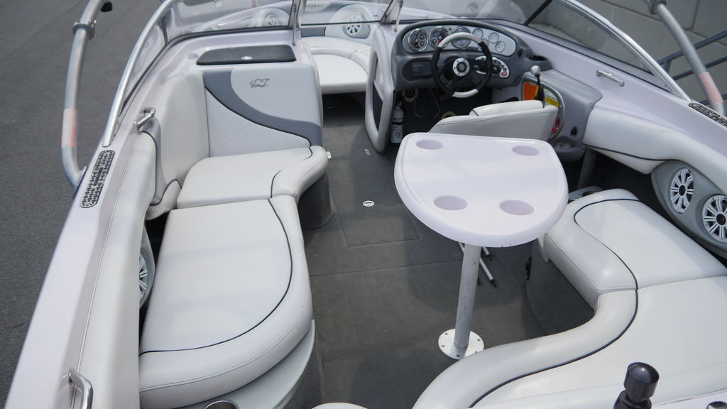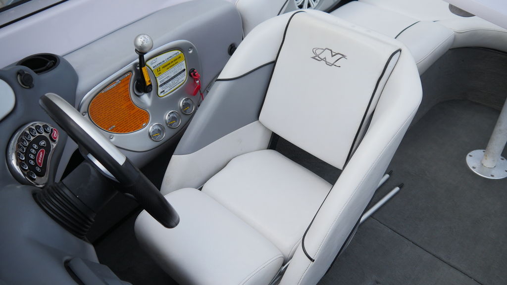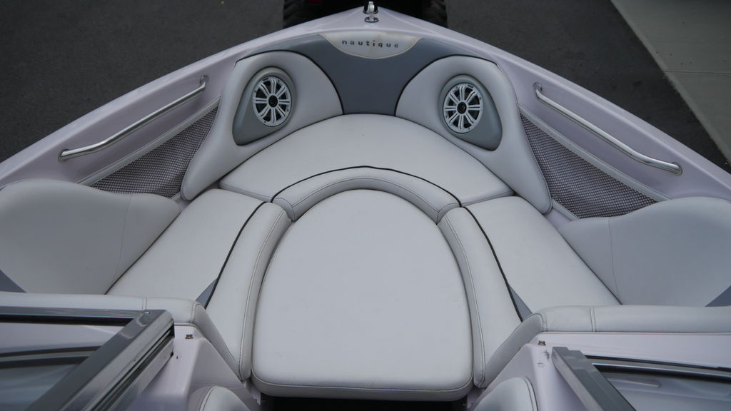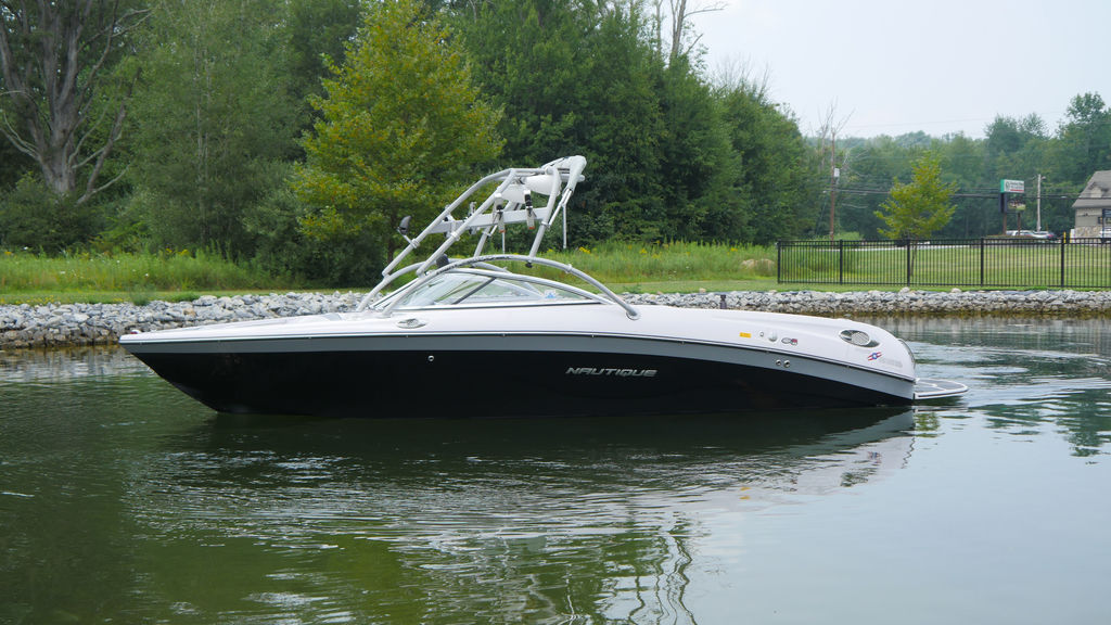 Freshwater only boat with updated stereo, updated gauges, and snap-on mooring cover. With the gauges having been replaced recently, the hour meter reads 125 on the gauge but the ecm registers 552 hours on the motor, all freshwater. Our dealership sold this boat new back in 2004 and have serviced it since. The interior is all original and in good shape for its age. The exterior of the boat had major fading in the black gel coat and instead of refinishing it, we chose to wrap the boat with a matching black vinyl (photos available of the boat prior to being wrapped) This was an efficient way for a perfect exterior appearance and updated Nautique Chromax.