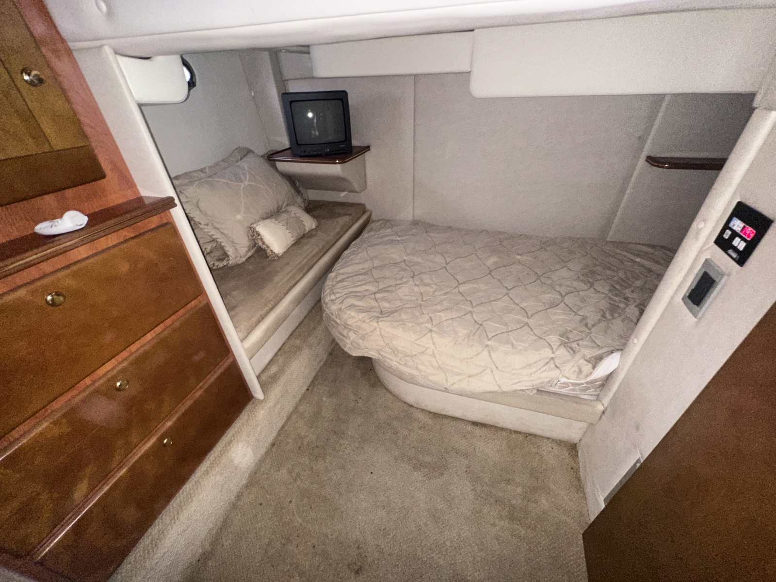 This spacious and well-equipped 2004 Rinker Fiesta Vee 410 is an unbeatable value for anyone looking to enjoy comfortable cruising without breaking the bank. Surveyed in June of 2025 by SAMS surveyor, she is Powered by twin MerCruiser 8.1L MPI engines with V-Drives and low hours, this vessel delivers reliable performance and smooth handling on the water.
