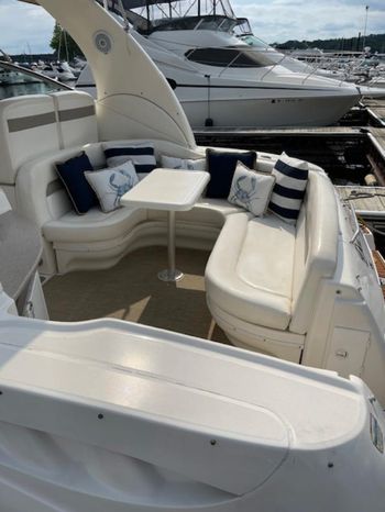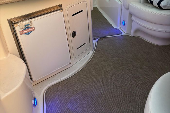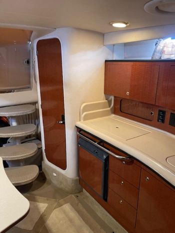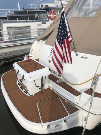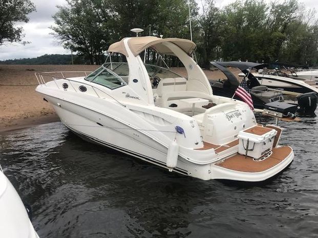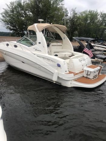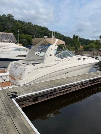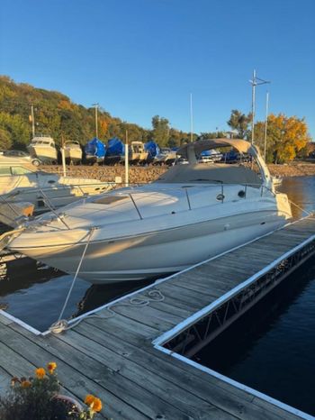 There's plenty of room for family, friends and almost anything you care to bring onboard the sleek new Sea Ray 320 Sundancer. Thanks to the standard power of twin 5.0L MPI Bravo III MCM stern drives (T-260 hp), you'll have no trouble leaving your daily routine at the dock as you enjoy hours of relaxing fun on the water. For extended excursions, this stylish cruiser with its bold, new profile offers plenty of sleeping accommodations.