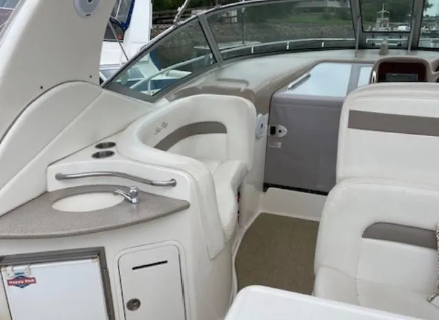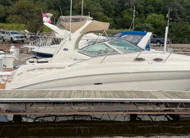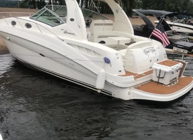 There's plenty of room for family, friends and almost anything you care to bring onboard the sleek new Sea Ray 320 Sundancer. Thanks to the standard power of twin 5.0L MPI Bravo III MCM stern drives (T-260 hp), you'll have no trouble leaving your daily routine at the dock as you enjoy hours of relaxing fun on the water. For extended excursions, this stylish cruiser with its bold, new profile offers plenty of sleeping accommodations.
