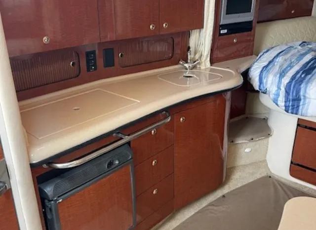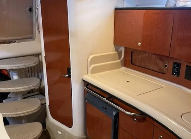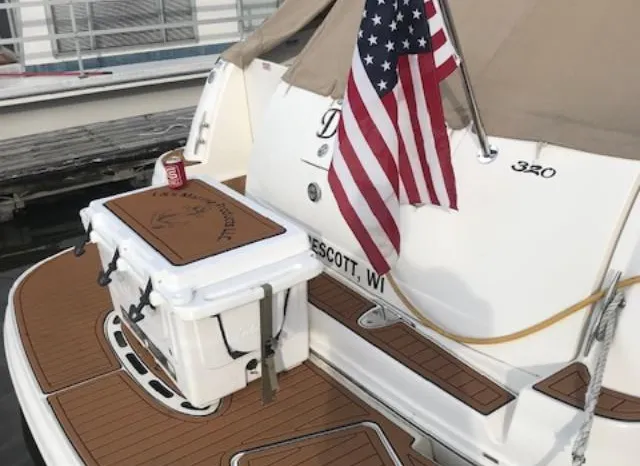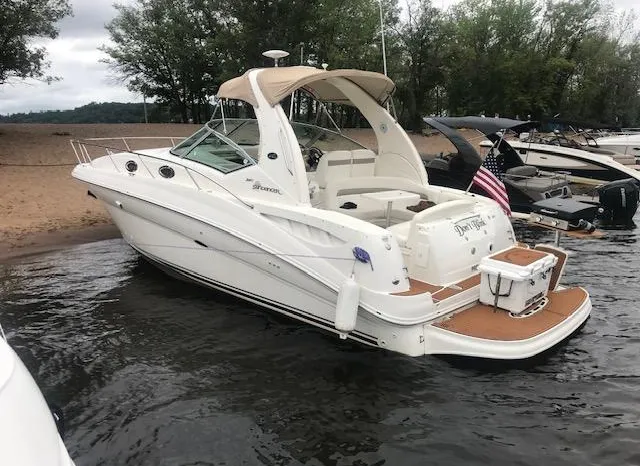 There's plenty of room for family, friends and almost anything you care to bring onboard the sleek new Sea Ray 320 Sundancer. Thanks to the standard power of twin 5.0L MPI Bravo III MCM stern drives (T-260 hp), you'll have no trouble leaving your daily routine at the dock as you enjoy hours of relaxing fun on the water. For extended excursions, this stylish cruiser with its bold, new profile offers plenty of sleeping accommodations.