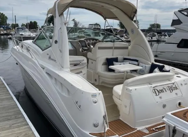 There's plenty of room for family, friends and almost anything you care to bring onboard the sleek new Sea Ray 320 Sundancer. Thanks to the standard power of twin 5.0L MPI Bravo III MCM stern drives (T-260 hp), you'll have no trouble leaving your daily routine at the dock as you enjoy hours of relaxing fun on the water. For extended excursions, this stylish cruiser with its bold, new profile offers plenty of sleeping accommodations.