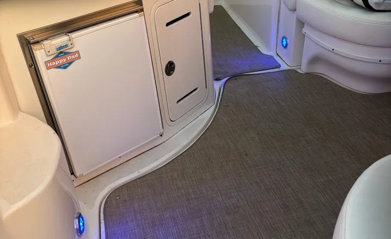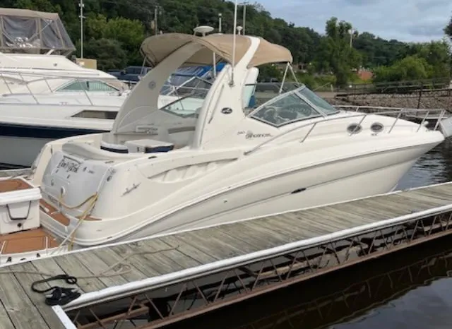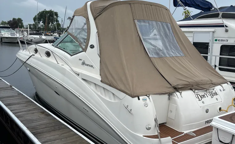 There's plenty of room for family, friends and almost anything you care to bring onboard the sleek new Sea Ray 320 Sundancer. Thanks to the standard power of twin 5.0L MPI Bravo III MCM stern drives (T-260 hp), you'll have no trouble leaving your daily routine at the dock as you enjoy hours of relaxing fun on the water. For extended excursions, this stylish cruiser with its bold, new profile offers plenty of sleeping accommodations.