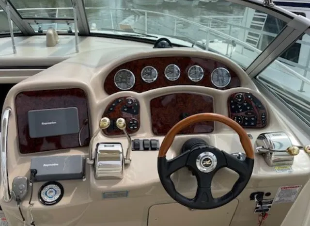 There's plenty of room for family, friends and almost anything you care to bring onboard the sleek new Sea Ray 320 Sundancer. Thanks to the standard power of twin 5.0L MPI Bravo III MCM stern drives (T-260 hp), you'll have no trouble leaving your daily routine at the dock as you enjoy hours of relaxing fun on the water. For extended excursions, this stylish cruiser with its bold, new profile offers plenty of sleeping accommodations.