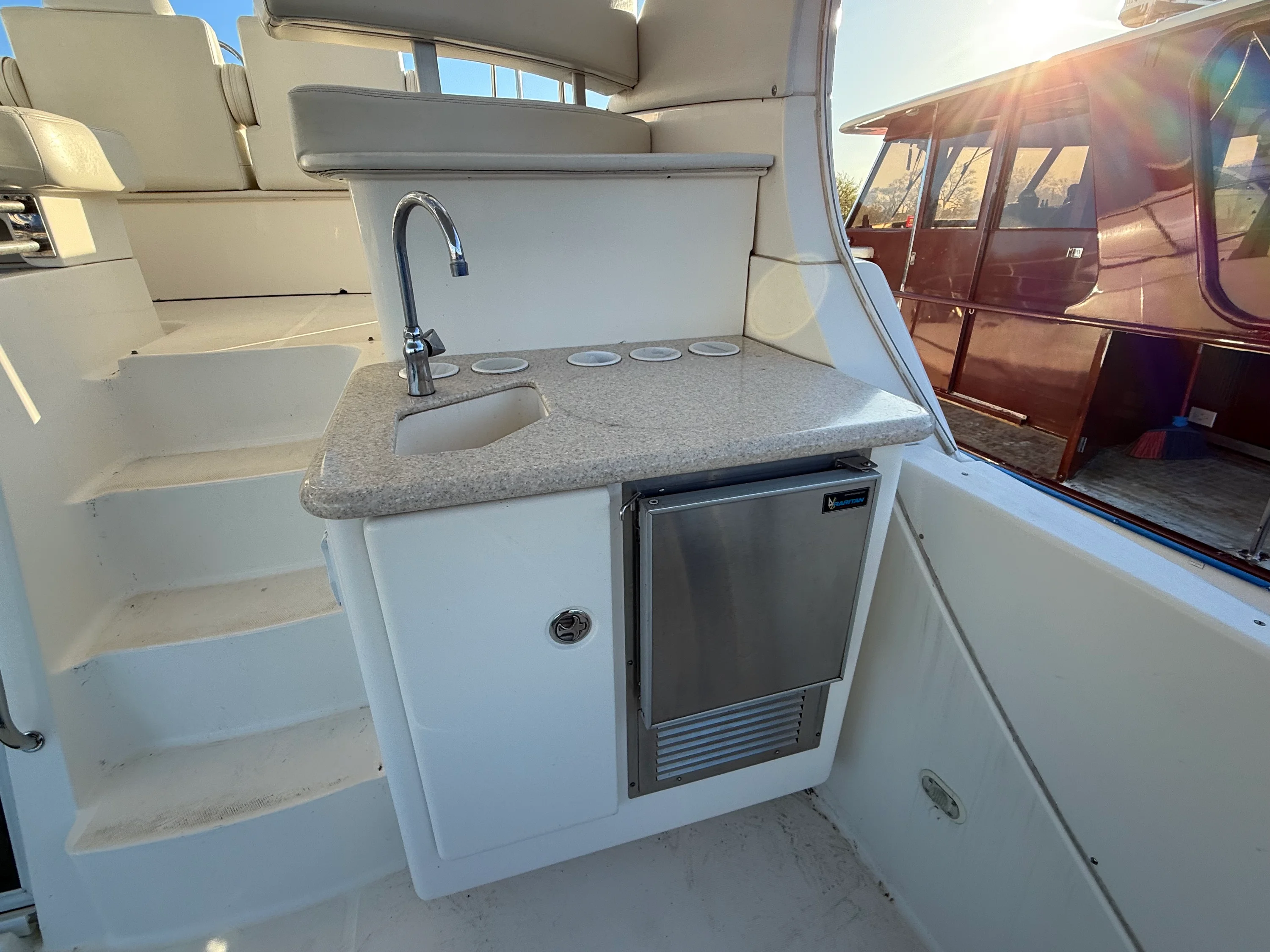 bed and private access to the second day head. The aft deck has