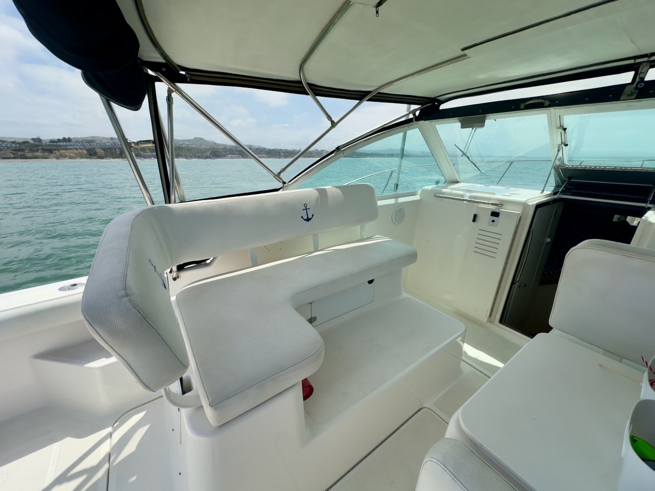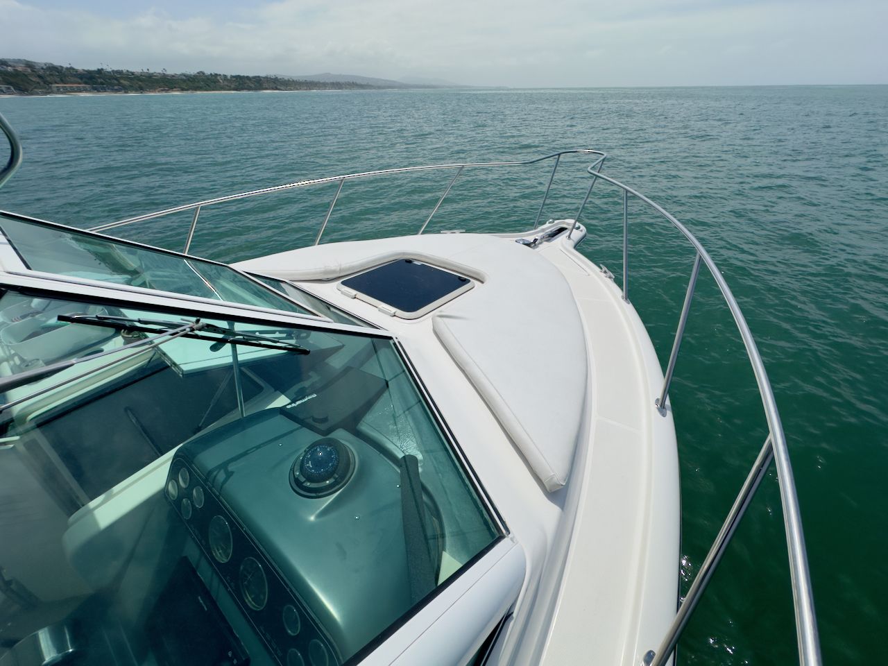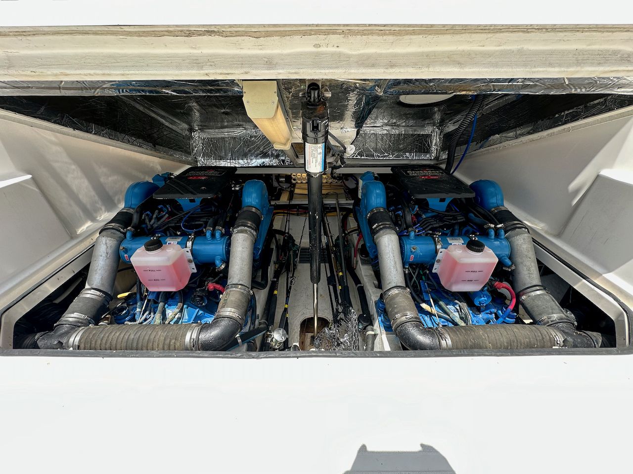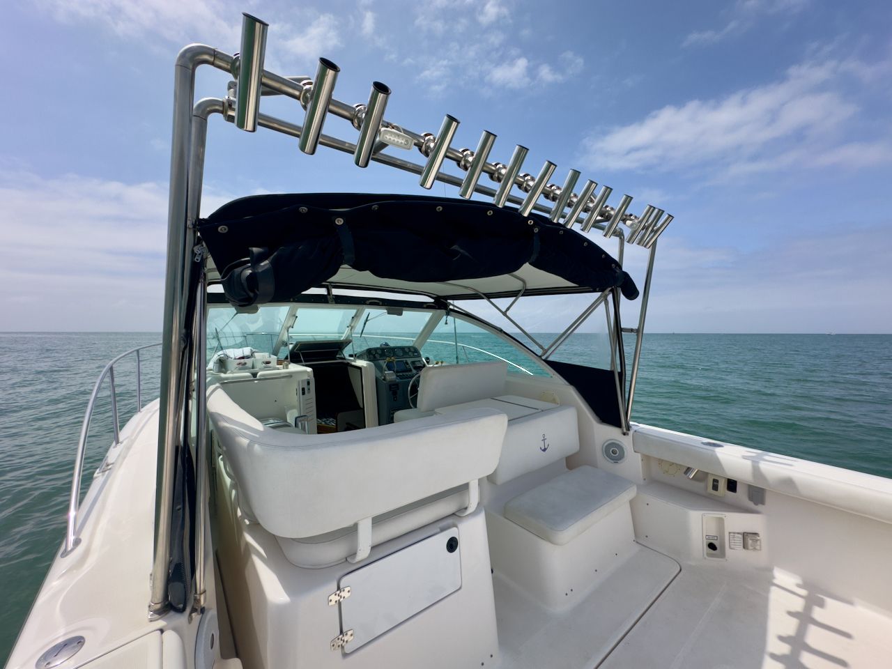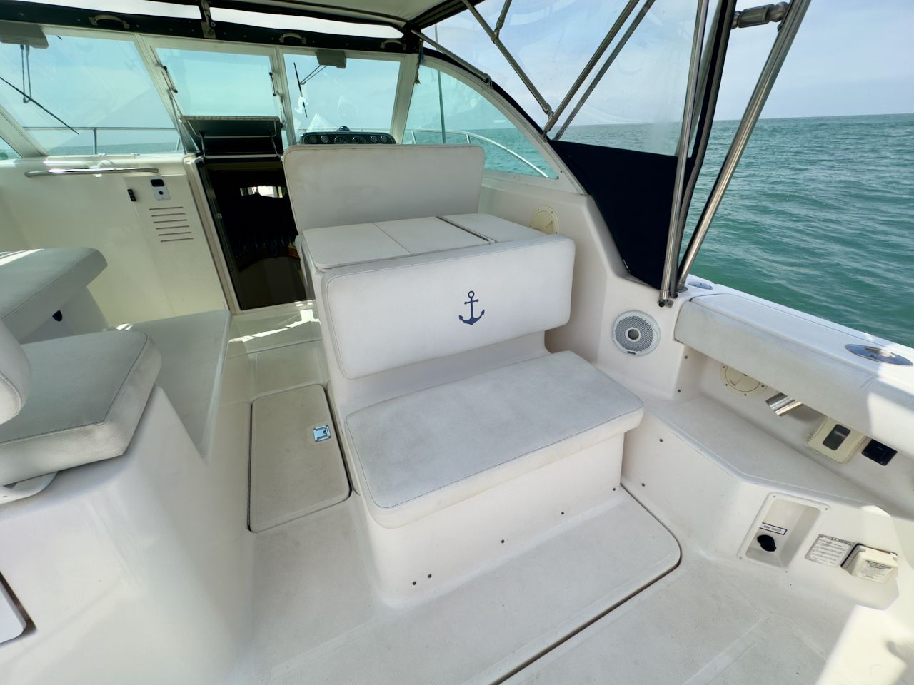 The 2004 Tiara 2900 Coronet is a stylish and versatile sport cruiser with one of the roomiest cockpits available in a 29-foot boat. Built on a modified-V hull with a wide beam and sharp bow entry, this model embodies the superb finish and engineering excellence that Tiara is known for. The Coronet emphasizes open-air enjoyment, featuring a large cockpit capable of seating a small crowd comfortably. The Crusader engines are conveniently located under the seat boxes, with the forward section of the deck lifting electrically for easy motor access. The cockpit includes generous seating, a wet bar aft of the helm seat, coaming bolsters, and a centerline transom door. The high windshield stands out for its sturdy construction and innovative reverse-angled spray guard along the top. Below deck, the compact interior offers berths for two, an enclosed head, a mini-galley, and a teak-and-holly cabin sole. Powered by twin 320hp gas inboards, the 2900 Coronet cruises comfortably at 22 knots and can reach a top speed of about 31 knots. This 2004 model is a prime example of Tiara's dedication to quality and performance, perfect for those who love boating with family and friends. Key features include: Recently replaced Heat Exchangers, Manifolds, Risers, Recently replaced Batteries, new freshwater pump, freshwater head, upgraded battery charger, new hoses, deck lighting, underwater lighting, custom rocket launchers, bait tank via swim platform, updated Raymarine helm electronics, bow lounge cushion and was recently reupholstered.