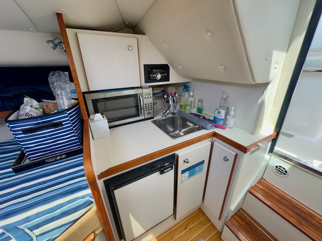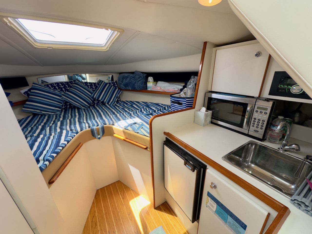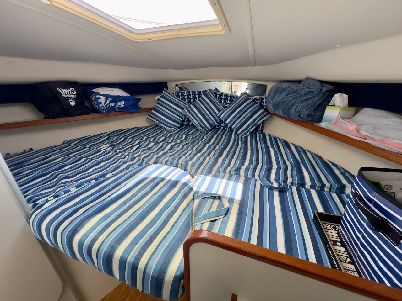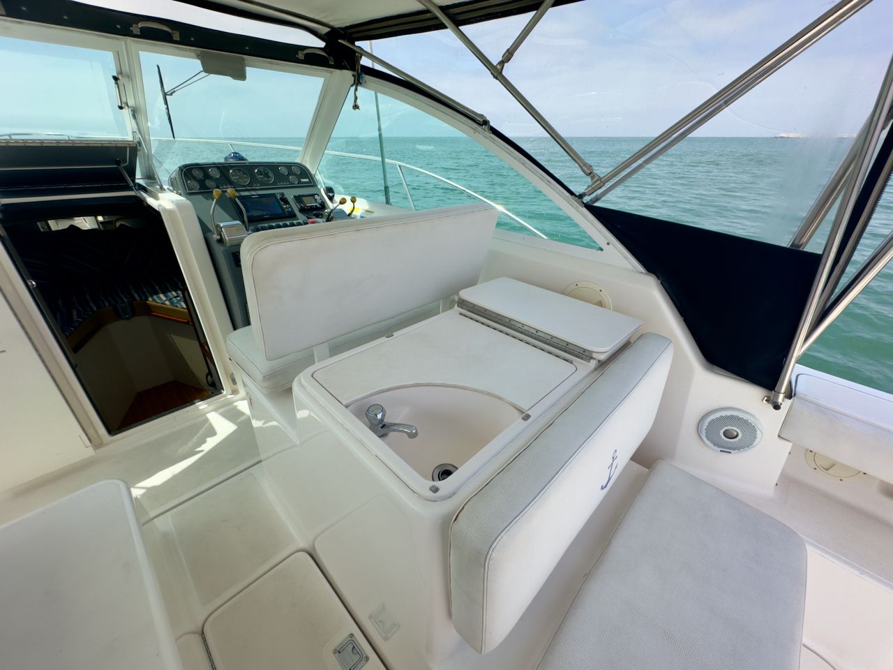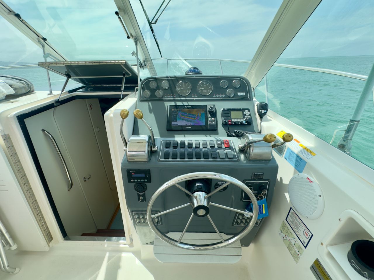 The 2004 Tiara 2900 Coronet is a stylish and versatile sport cruiser with one of the roomiest cockpits available in a 29-foot boat. Built on a modified-V hull with a wide beam and sharp bow entry, this model embodies the superb finish and engineering excellence that Tiara is known for. The Coronet emphasizes open-air enjoyment, featuring a large cockpit capable of seating a small crowd comfortably. The Crusader engines are conveniently located under the seat boxes, with the forward section of the deck lifting electrically for easy motor access. The cockpit includes generous seating, a wet bar aft of the helm seat, coaming bolsters, and a centerline transom door. The high windshield stands out for its sturdy construction and innovative reverse-angled spray guard along the top. Below deck, the compact interior offers berths for two, an enclosed head, a mini-galley, and a teak-and-holly cabin sole. Powered by twin 320hp gas inboards, the 2900 Coronet cruises comfortably at 22 knots and can reach a top speed of about 31 knots. This 2004 model is a prime example of Tiara's dedication to quality and performance, perfect for those who love boating with family and friends. Key features include: Recently replaced Heat Exchangers, Manifolds, Risers, Recently replaced Batteries, new freshwater pump, freshwater head, upgraded battery charger, new hoses, deck lighting, underwater lighting, custom rocket launchers, bait tank via swim platform, updated Raymarine helm electronics, bow lounge cushion and was recently reupholstered.