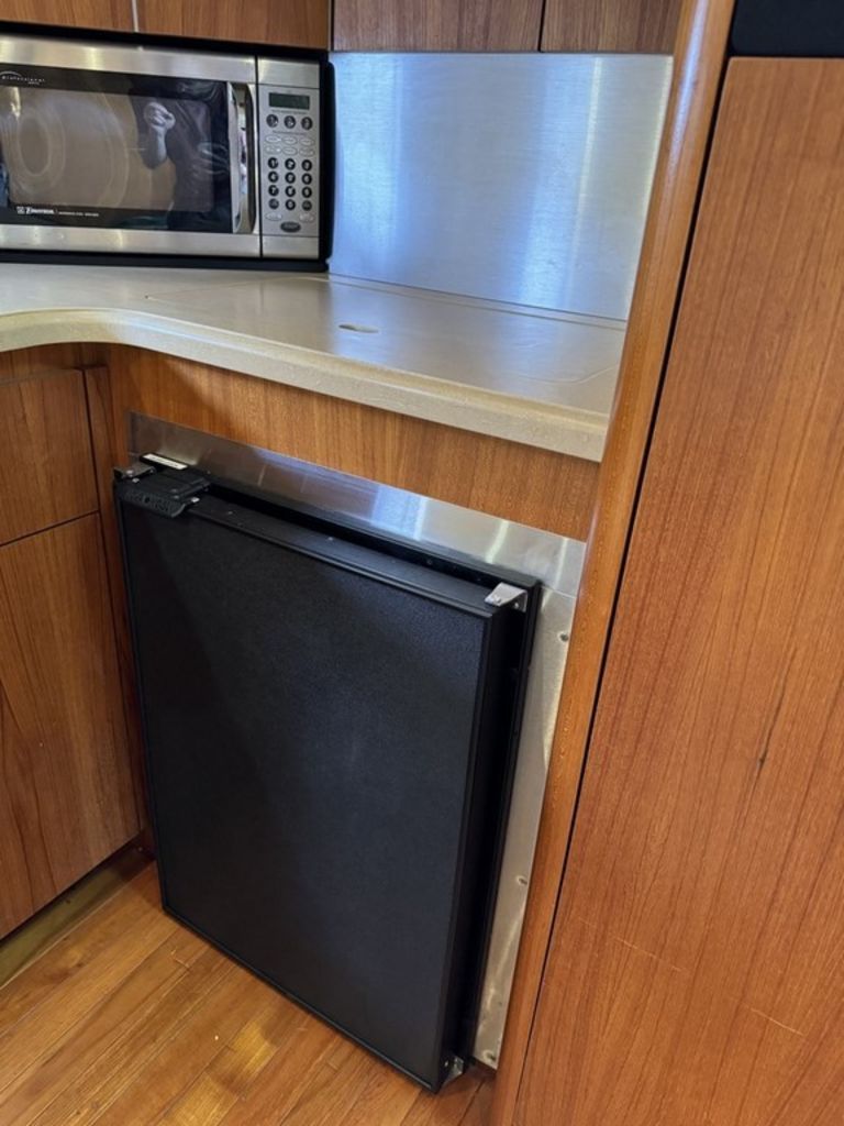 Corian countertops, stainless steel sink, Force 10 two-burner stove, microwave oven, built-in coffee maker, NovaKool refrigerator/freezer (new May 2018). Modern and functional for onboard living.