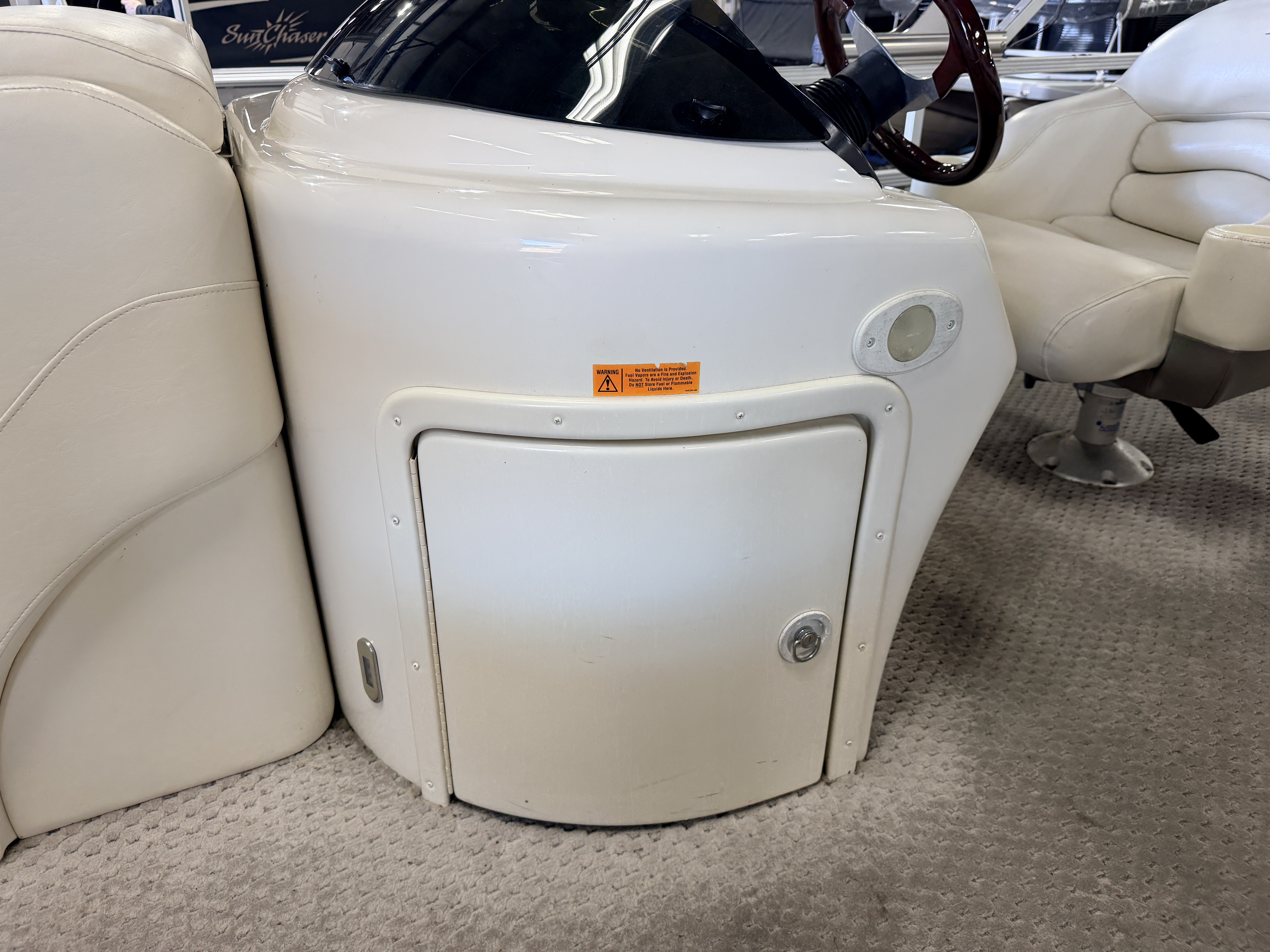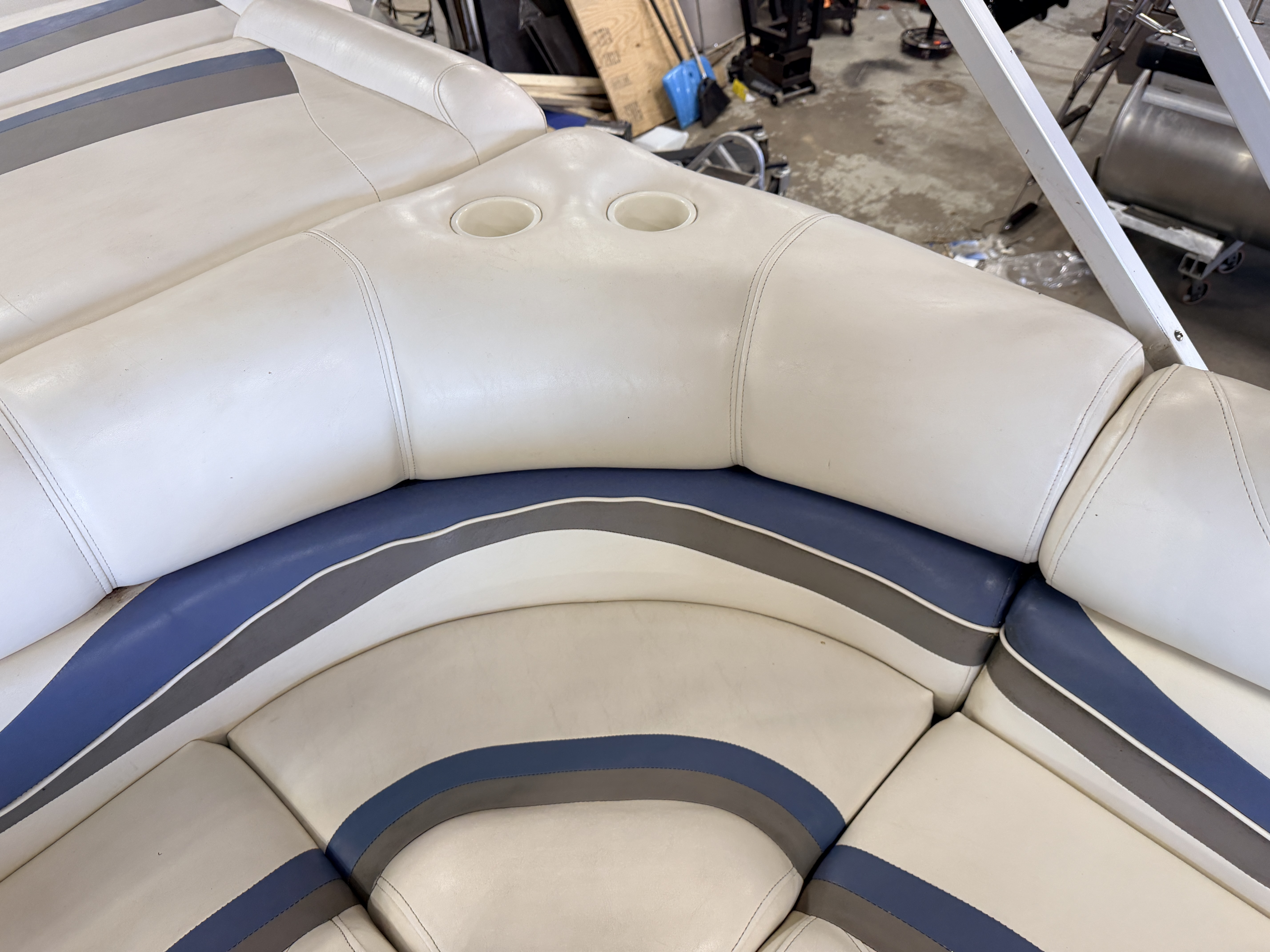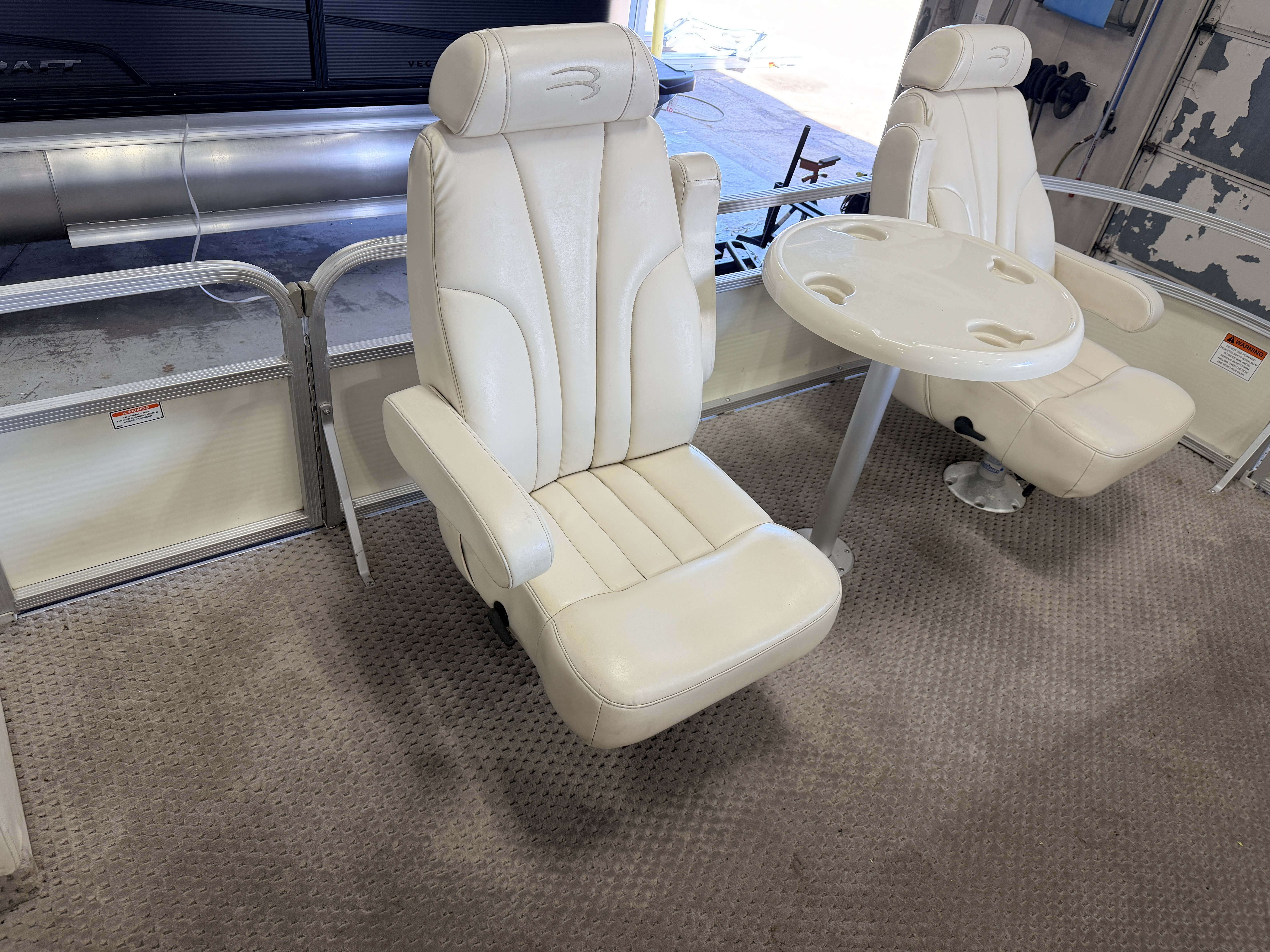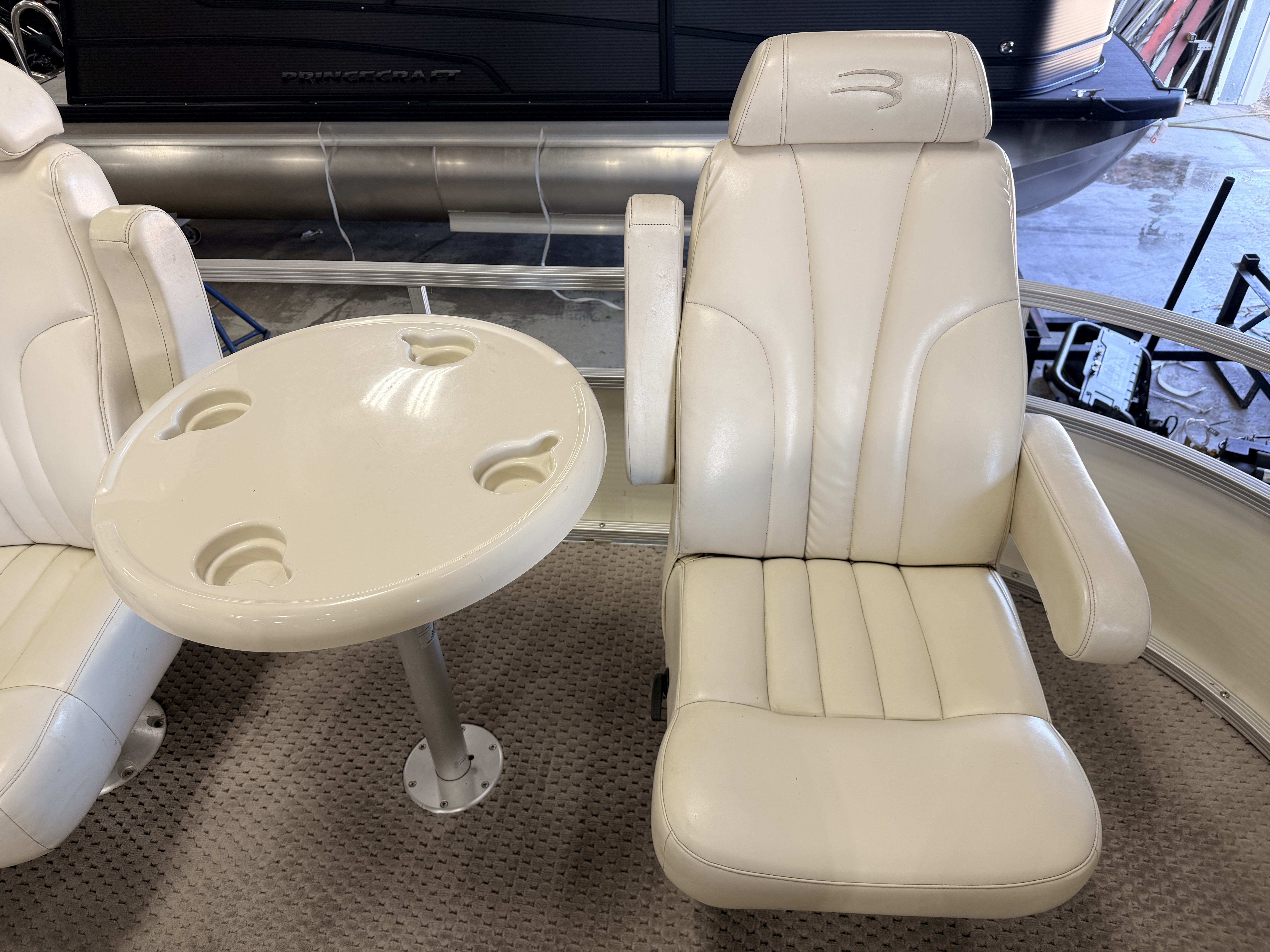 2005 Bennington 2275RL Pontoon & 75HP Yamaha Fourstroke. Interior seating includes Lounge couch, Dual Lounge chairs and Captain's Chair, L-shaped Couch and Large Sun Deck. Features include table, Fiberglass helm with Tachometer, Fuel, Volt and Trim gauges, Pyle Bluetooth Stereo, Fold down Swim Ladder and Platform, Privacy/Changing station, and Docking Lights. Additional Features include Power Bimini top, built-in Ski/Tow bar, and movable cup holder.
