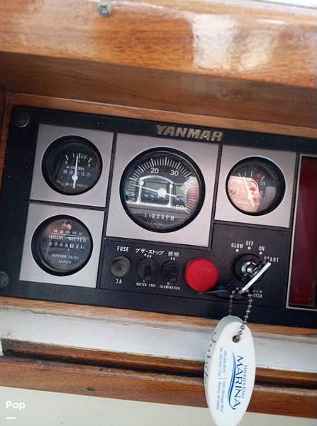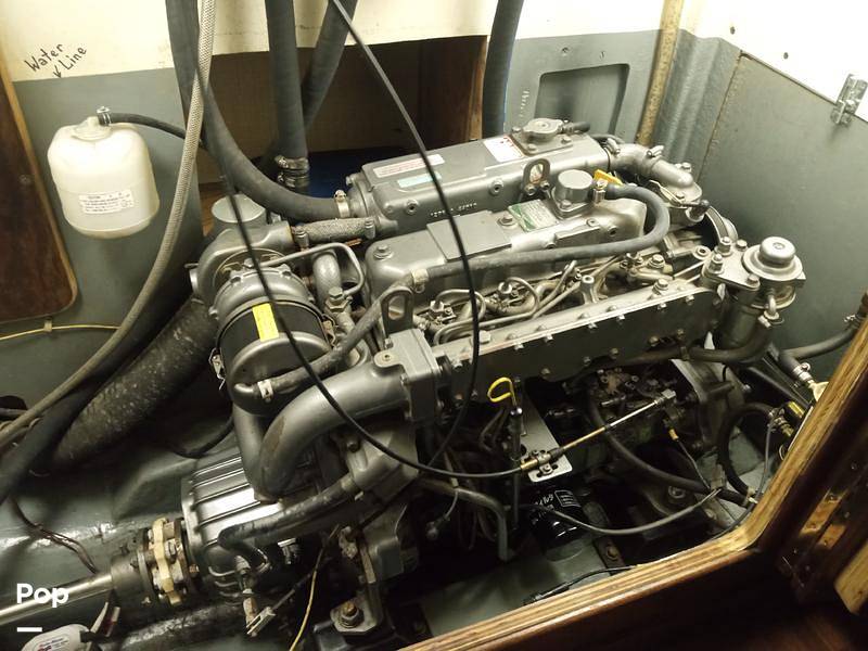 Powered by a Yanmar 75 HP turbo charged diesel, with 596 hours as of January 2026. The motor is clean and regularly maintained. Oil changed every 25 hours, water and fuel filters changed twice a season. 100 gallon molded in fuel tank, Kanzaki transmission and Renogy RVG-100D cell solar panel.