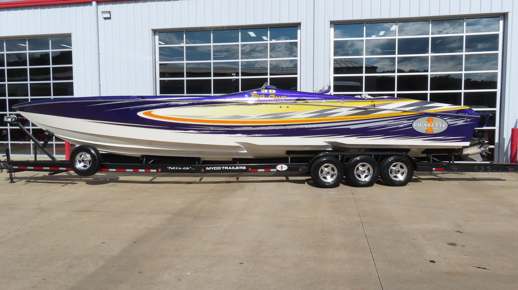 2005 Cigarette 39 Top Gun powered by twin Mercury Racing HP600SCi with 135 hours on top ends and freshly rebuilt drives.