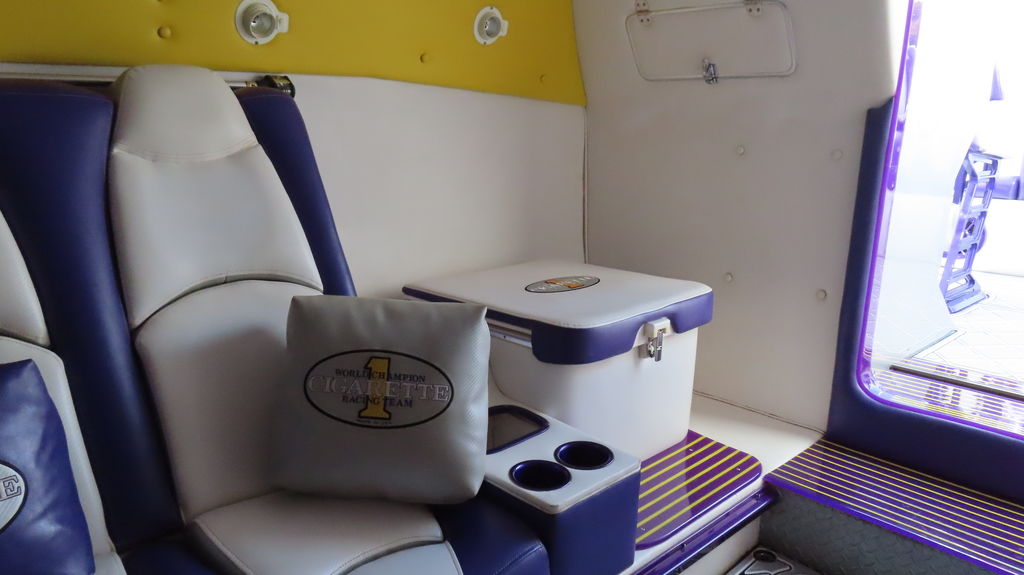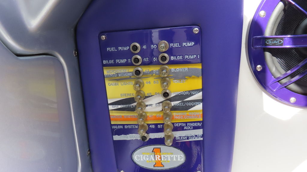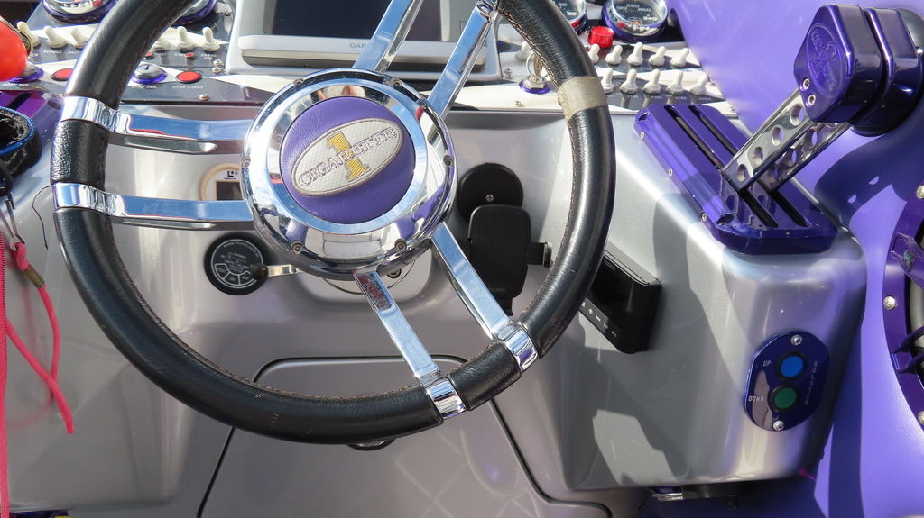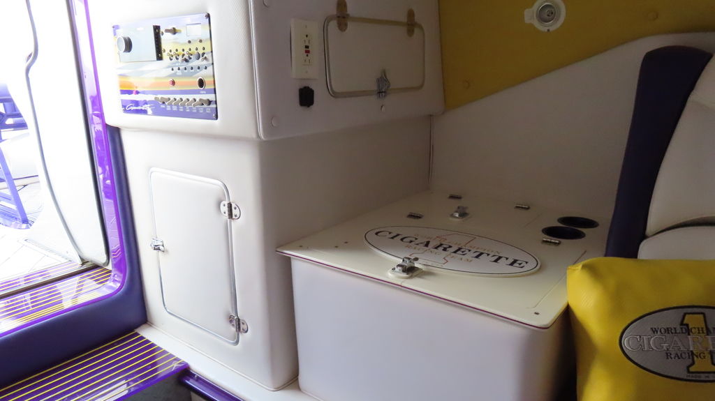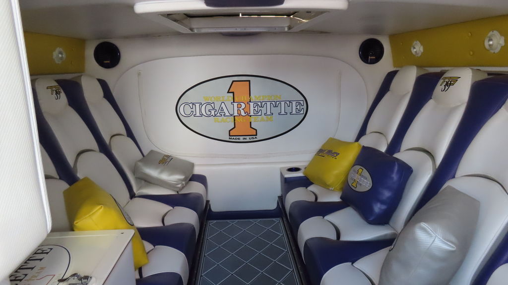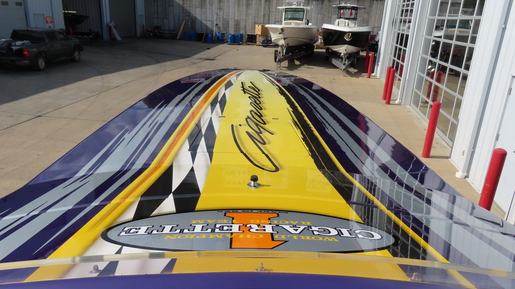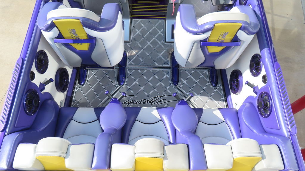 Upgraded Waves and Wheels sound system, LED underwater lights, ITS transoms, XR uppers, Sportmaster lowers with 5 blade 32P props, 280 Kplanes, external switchable mufflers, Livorsi gauges, GPS speedometer, Garmin 5208 touchscreen GPS chartplotter, heads up mechanical indicators, tilt helm, depth sounder, fume detector, halon system, electric bolsters, cockpit carpet, upgraded stereo system, covergirl cabin with porta potty, sea strainers, billet fender racks in bilge, shore power, battery charger, and Myco trailer with dual moped racks, tool box, spare, and drive guard included.